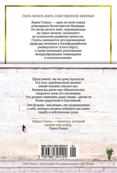 Iedomājieties: jūs atrodaties uz bezdibeņa malas. Un šajā liktenīgajā brīdī kāds jūs glābj. Apmaiņā pret to jūs apņematies izpildīt visas viņa pavēles. Tas ir paredzēts, lai mainītu jūsu dzīvi, padarot to priecīgāku un laimīgāku. Šis ir vairāk nekā romāns; tā ir pašrefleksija, kurai vajadzētu jūs iedrošināt ņemt savu likteni savās rokās.