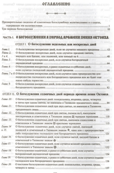 Teoloģijas maģistra V. V. Rozanova sastādītais un 20. gadsimta sākumā publicētais detalizētais stāsts par pareizticīgās baznīcas dievkalpojuma sastāvu joprojām ir viens no detalizētākajiem un pamatīgākajiem praktiskā pareizticīgo dievkalpojuma izpētes ceļvežiem. Atšķirībā no daudzām citām rokasgrāmatām, kurās daudz uzmanības veltīts dievkalpojuma vēsturei un nozīmei, šī grāmata galvenokārt paredzēta praktiskai lietošanai dievkalpojumu sastādīšanā. Ar daudzu tabulu un detalizētu norādījumu palīdzību autors detalizēti aplūko visas iespējamās dažādu dievkalpojumu apkārtrakstu kombinācijas no Baznīcas statūtiem. Grāmata ir neaizstājams ceļvedis visiem baznīcas kalpotājiem un liturģijas studentiem.