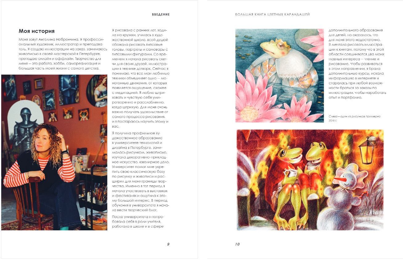 Tajā profesionālā māksliniece Angelina Nebrencina pastāstīs visu, ko vēlējies zināt par krāsainiem zīmuļiem, bet baidījās jautāt. Kopā ar to jūs izvēlēsieties nepieciešamos materiālus, iemācīsieties strādāt ar krāsu un kompozīciju, kā arī nostiprināsiet iegūtās zināšanas ar autora soli pa solim apgūto meistarklasi. Šī grāmata būs brīnišķīga grāmatplaukta kā iesācēju mākslinieku un profesionāļu apdare.