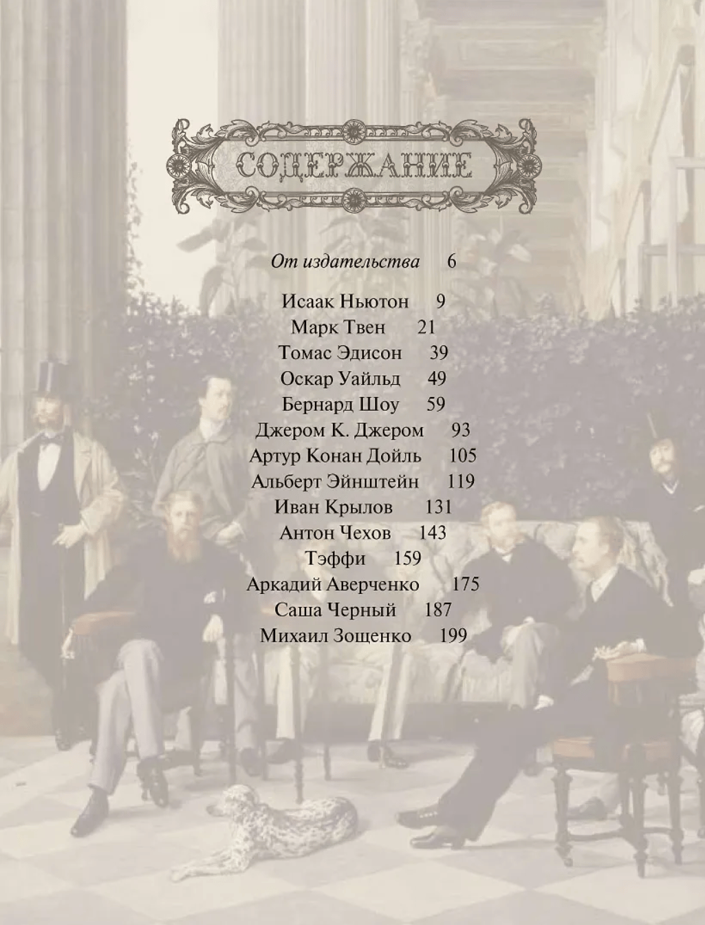 "Fiziķi" un "dziesmu tekstu autori", kuru rīcība ir iemūžināta jokos un smieklīgos stāstos, sākot no Marka Tvena līdz Albertam Einšteinam, no Tomasa Edisona līdz Ilfam un Petrovam, no Īzaka Ņūtona līdz Artūram Konanam Doilam, no Ivana Krilova līdz Mihailam Zoščenko! Šajā greznajā kolekcijā esam apkopojuši jums pamācošus stāstus no slavenību dzīves, viņu citātus, frāzes un asprātīgus jokus, kas jau sen ir kļuvuši par folkloras sastāvdaļu.