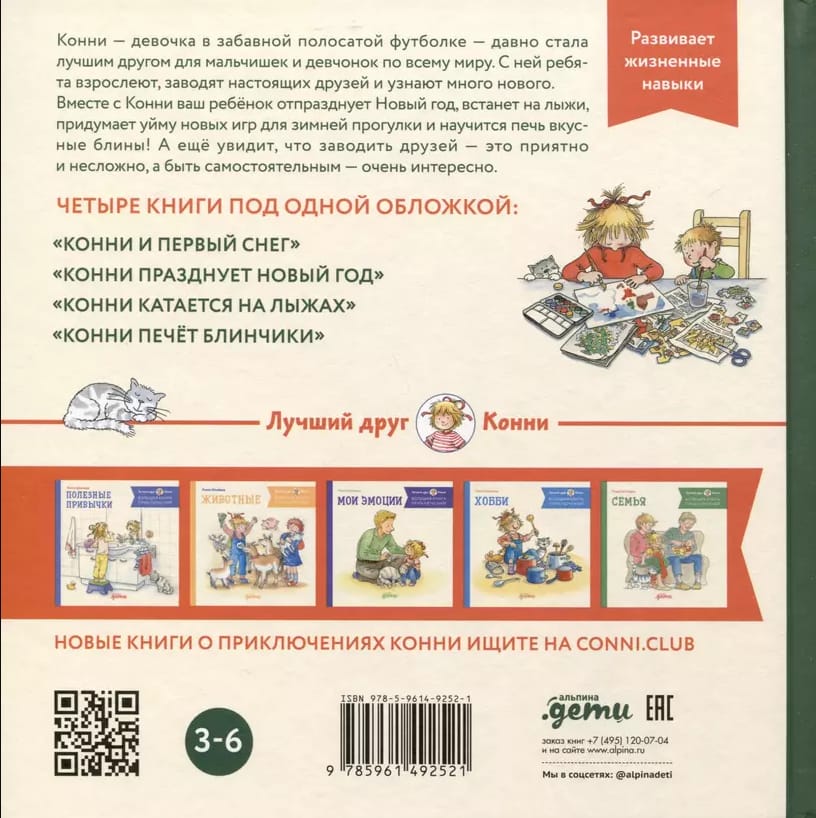 Izlasījis šos ziemas stāstus, jūsu mazulis kopā ar Koniju un viņas ģimeni svinēs Jaungada vakaru, kāps uz slēpēm, izdomās daudz jaunu spēļu ziemas izbraucienam un iemācīsies cept gardas pankūkas! Viņš arī redzēs, ka iegūt draugus ir jautri un viegli, un būt patstāvīgam ir ļoti interesanti.