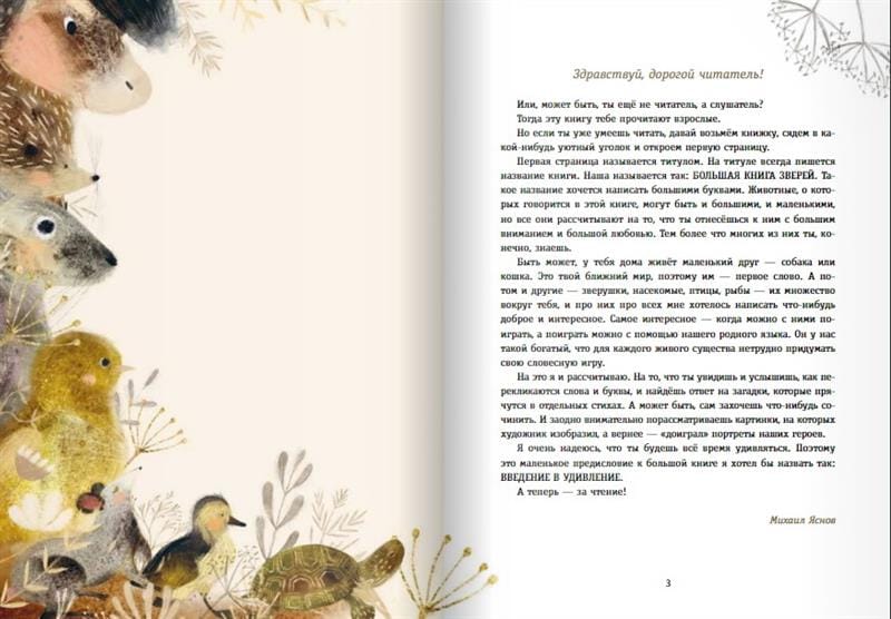 Krājumā iekļauti 42 pārsteidzoši dzejoļi par kaķiem un suņiem, kamanām un taureņiem, žagatām un ķepaiņiem, pūcēm, pīlēm, sivēniem un citiem mīļiem dzīvniekiem. Aizkustinoši, mīļi un smieklīgi dzejoļi omulīgiem ģimenes vakariem, nesteidzīgām pastaigām un tējas ballītēm - stāsti, kas tiek nodoti no paaudzes paaudzē, košas, siltas Karīnas Kino zelta ilustrācijas, ar neko nesajaucama bērnības atmosfēra - tas viss ir "Lielā zvēru grāmata".