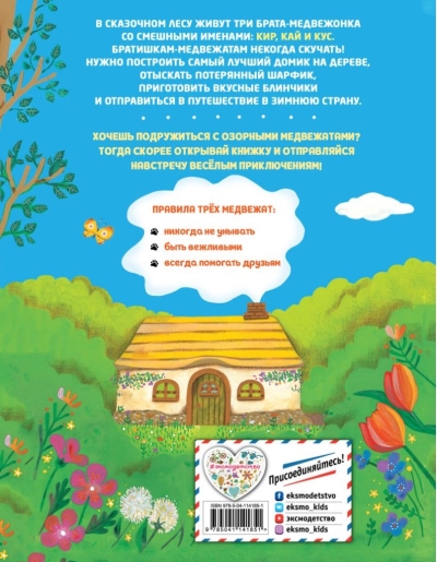 Vai vēl neesi saticis šos nerātnos mazos lācīšus? Viņu vārdi ir Kirs, Kai un Kuss, un viņi nekad nav nomākti, vienmēr atrod iemeslu priecāties. Pat tad, kad viesuļvētra noposta viņu koka māju! Šķiet, ka viņu optimisms ir kaut kas apbrīnojams!