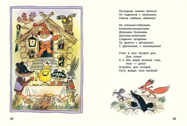 Daudzus Junas Moritsa bērnu dzejoļu varoņus: ežus, kucēnus, kazas, delfīnus, kaķus, govis – vieno siltas komunikācijas "lielais noslēpums". Viņi precīzi kopē bērnu uzvedību: ir nerātni, atsakās gulēt, bezgalīgi uzdod kam jautājumus, muļķojas. Bērniem patīk šādi dzejoļi. Ar šiem dzejoļiem var spēlēties. "Lapsene ieklīda pie mums pusstundu brokastīs." Vai atceraties, kas no tā sanāca? Un šos dzejoļus var arī dziedāt. Sāc lasīt un pēkšņi saproti, ka nevis lasi, bet dziedi: par gumijas ezīti, par suni, kas var kost. Grāmatu izcili ilustrējis Mihails Belomļinskis. Grāmata izdevusies dzīvespriecīga, saulaina. Visiem laikiem.