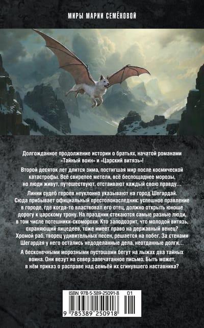 Ir ilgi gaidītais turpinājums romānos "Slepenais karotājs" un "Karaliskais bruņinieks" aizsāktajam stāstam par brāļiem. Ziema, kas piemeklējusi pasauli pēc kosmiskās katastrofas, ilgst jau otro desmitgadi. Vēl mežonīgākas sniegputeņi, vēl nežēlīgāks sals, bet cilvēki dzīvo, ceļo, aizstāv katrs savu taisnību... Varoņu likteņu līnijas nemainīgi norāda uz Šegardai pilsētu. Šeit ierodas oficiālais troņa mantinieks: veiksmīgai valdīšanai pilsētā, kurā reiz valdīja viņa tēvs, vajadzētu pavērt jaunietim ceļu uz karaļa troni. Uz svētkiem pulcējas visdažādākie ļaudis, tostarp arī jautrības tīkotāji. Kurš gan nojauš, ka arī jaunajam bruņiniekam, kas sargā maskarādniekus, ir tiesības uz varas kroni? Kļūdainais vergs, brīnišķīgu dziesmu radītājs, nolemj bēgt. Aiz Šegardai mūriem viņam ir nepabeigti darījumi, nenomaksāti parādi... Un divi slepenie karotāji skrien ar slēpēm pa bezgalīgajiem salnainajiem tuksnešiem. Viņi nes aizzīmogotu vēstuli uz ziemeļiem. Vai tas varētu būt pavēle nogalināt viņu pazaudētā mentora ģimeni?