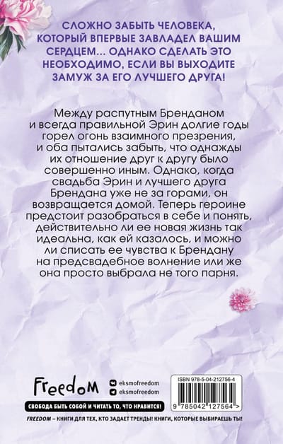 Starp izšķīdušo Brendanu un vienmēr pareizo Erinu ilgus gadus dega savstarpējas nicinājuma uguns, un abi centās aizmirst, ka kādreiz viņu attieksme vienam pret otru bija pavisam citāda. Tomēr, kad Erinas kāzas ar Brendana labāko draugu ir tepat aiz stūra, viņš atgriežas mājās. Tagad varonei ir jāsakārtojas un jāsaprot, vai viņas jaunā dzīve tiešām ir tik perfekta, kā viņa domāja, un vai viņas jūtas pret Brendanu var saistīt ar pirmskāzu sajūsmu, vai arī viņa vienkārši izvēlējusies nepareizo puisi.