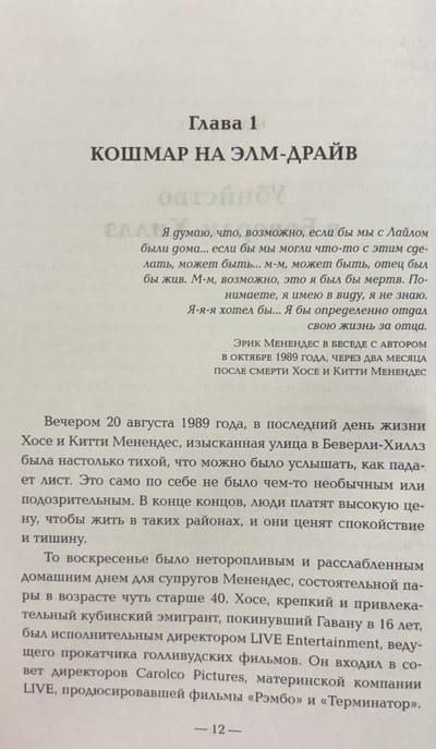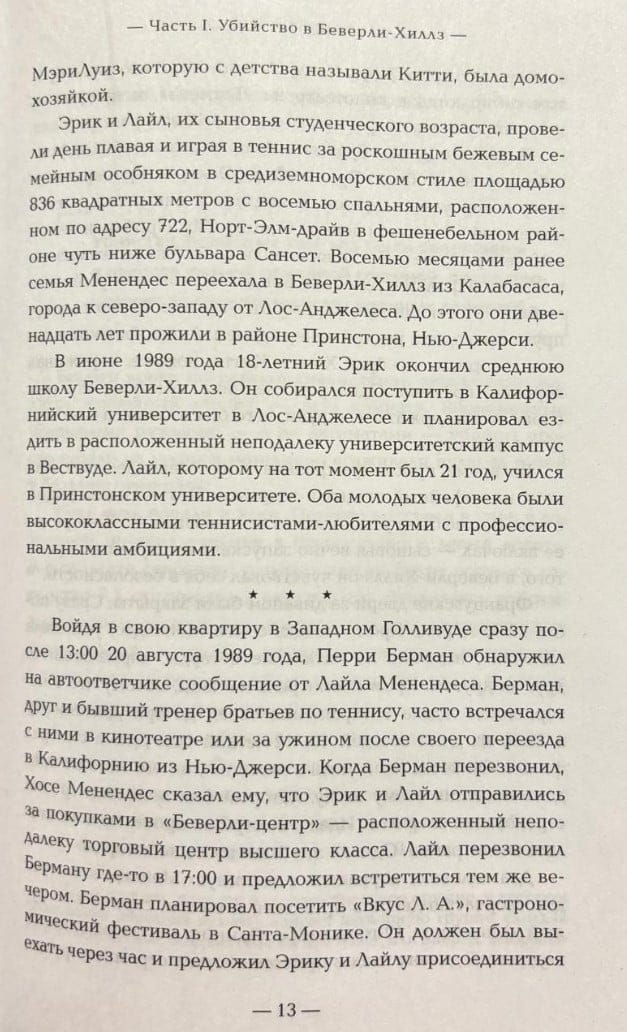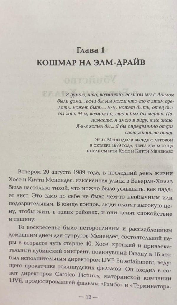 Šī grāmata ir žurnālista Roberta Renda vairāk nekā 30 gadu darba kulminācija, kurā viņš izpētīja katru šīs brutālās traģēdijas detaļu. Ar unikālu piekļuvi Menendezu ģimenei Rends atklāja ārkārtas detaļas, satriecošas, iepriekš nepublicētas atklāsmes, kas noveda pie brāļu tiesas procesa atkārtotas izskatīšanas.