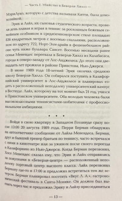 Klusa apkaime ar cienījamiem iedzīvotājiem, greznību, mieru un klusumu. 1989. gada augusta svētdiena. Šķita, ka nekas nespēj traucēt dzīves mieru Beverlihilsā. Bet tad vienā no mājām atskanēja šāvieni…