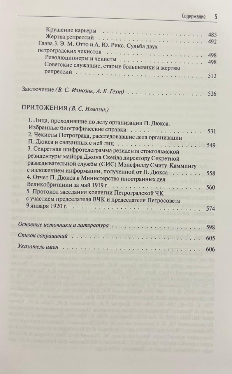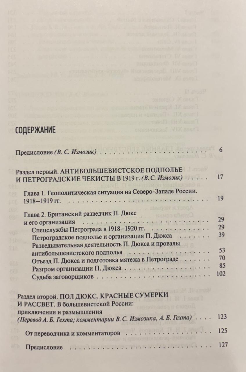 Šī grāmata, kuras redaktors ir vēstures zinātņu doktors V. S. Izmoziks un vēstures zinātņu kandidāts A. B. Gehts, aplūko Petrogradas čekistu cīņu pret antiboļševiku pagrīdi, ko 1918.–1919. gadā atbalstīja britu izlūkdienesti. Pētnieki pievērsās maz pētītai tēmai: britu izlūkdienesta virsnieka Pola Djūka antipadomju organizācijas izveidei un tās atmaskošanai no čekas puses. Publikācijas pamatā ir paša Pola Djūka memuāri, kas tulkoti krievu valodā un anotēti pēc tam, kad viņam izdevās aizbēgt uz ārzemēm. Tikpat plašu un saistošu grāmatas daļu veido esejas, kuru pamatā ir arhīvu (galvenokārt izmeklēšanas) materiāli un kas veltītas britu izlūkdienesta virsnieka un viņa līdzdalībnieku, kā arī šī stāsta galveno varoņu — Petrogradas čekistu, kas cīnījās pret spiegošanu, un viņu pretinieku — atmaskošanai. Publikācijai ir pievienoti dokumentāli pielikumi, un tā ir paredzēta gan plašam lasītājam, gan vēsturniekiem.