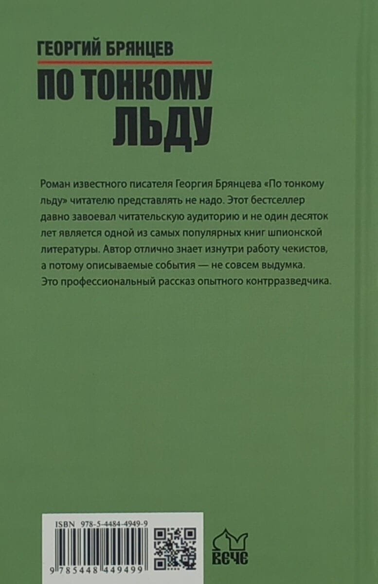 Slavenā rakstnieka Georgija Brjanceva romāns "Uz plānā ledus" nav jāuzrāda. Šis bestsellers jau sen ir iemantojis lasītāju simpātijas un ir viena no populārākajām spiegu literatūras grāmatām. Autors lieliski no iekšpuses pārzina čekistu darbību, tāpēc aprakstītie notikumi nav pilnīga fikcija. Tas ir pieredzējuša pretizlūkošanas virsnieka profesionāls stāsts.