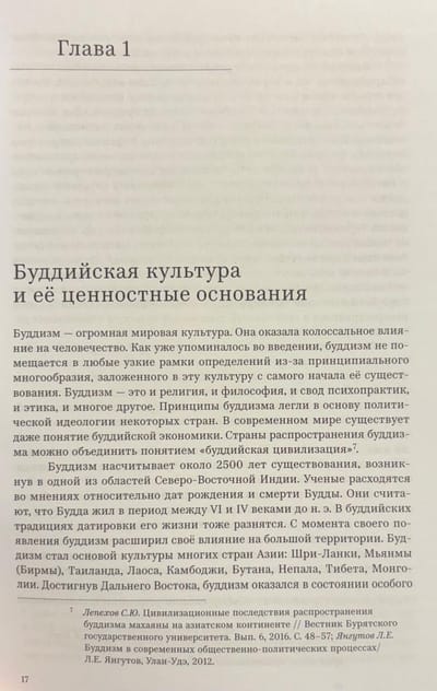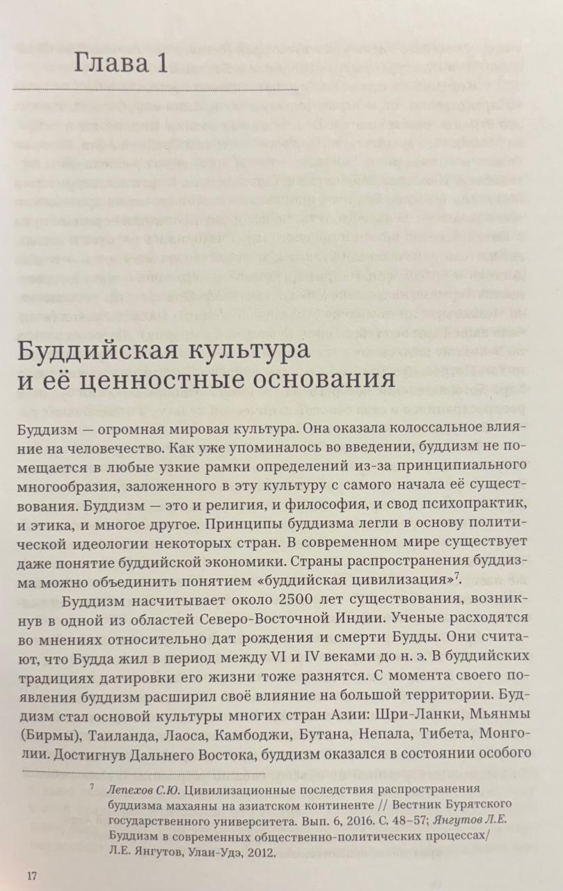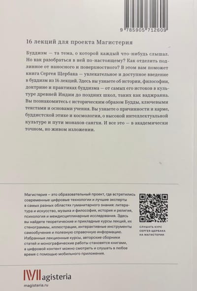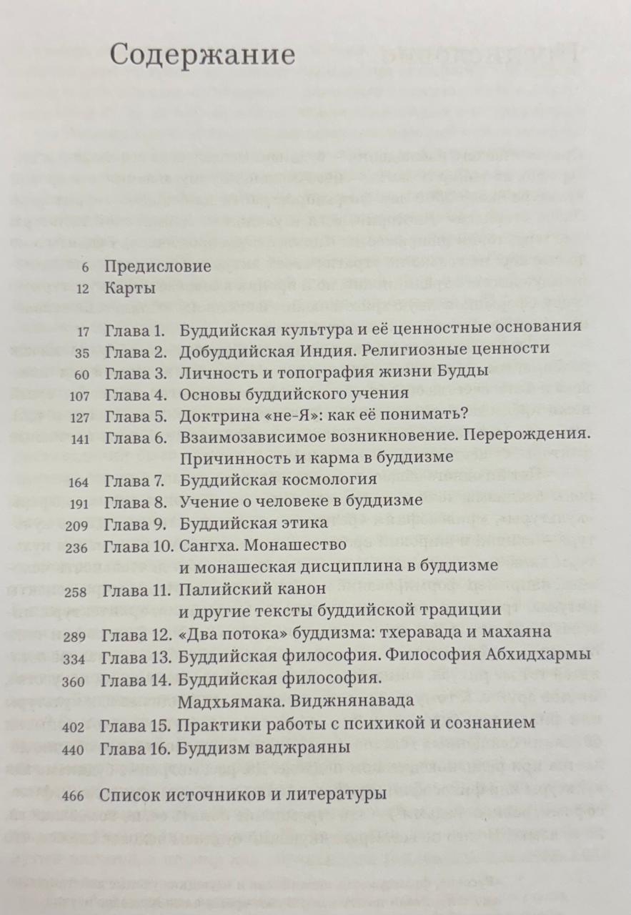 Šī visaptverošā reliģijas studiju kursa sešpadsmit lekcijās Sergejs Ščerbaks pieejamā un precīzā veidā sniedz visaptverošu budisma vēstures, filozofijas, doktrīnas un psihoprakses aprakstu. Šis kurss sākas ar īsu iepazīšanos ar Senās Indijas garīgo kultūru, minot piemērus no svētajiem tekstiem un stāstiem par adživikiem un džainiem — agrīnā budisma galvenajiem "konkurentiem" — un sniedz ieskatu vēlākajās skolās un vadžrajānas mācībās. Autors cenšas rekonstruēt budisma pamatlicēja, princa Gautama Šakjamuni, mitoloģisko stāstu vēsturisko kodolu un konsekventi un rūpīgi izklāsta viņa mācību galvenos principus, balstoties uz budisma kanona galvenajiem tekstiem. Īpašas lekcijas ir veltītas tādām interesantām tēmām kā budisma kosmoloģija un izglītības sistēma.