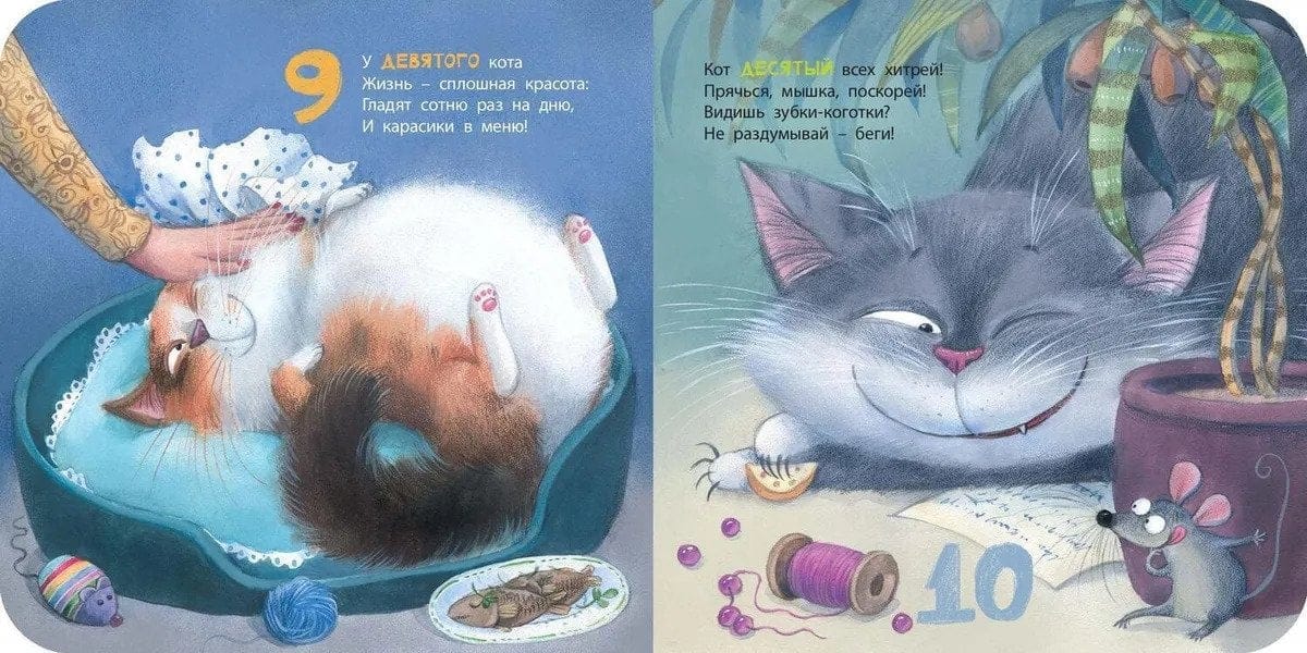 Šajā jautrajā grāmatā ir desmit brīnišķīgi kaķēni. Un katram no tiem ir savs stāsts, kas izstāstīts Ksenijas Valahanovičas jautrajos dzejoļos un Ļubovas Jereminas-Nošinas rotaļīgajos zīmējumos. Skaitīsim kaķēnus!