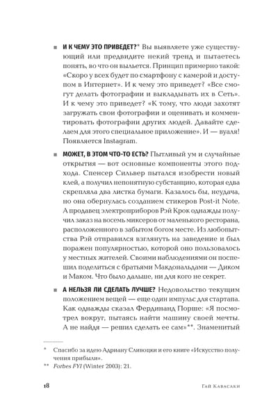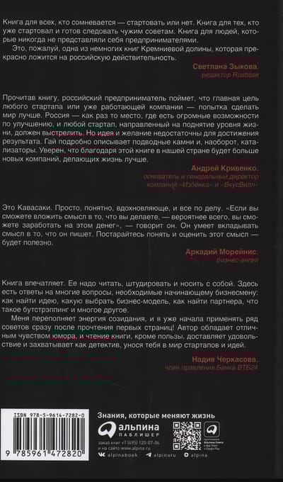 Ikviens pazīst Kawasaki no viņa darba Apple: tieši viņam kā uzņēmuma galvenajam evaņģēlistam mēs esam parādā par Apple tehnoloģiju aizrautību. Pēc darba Cupertino, Kawasaki ieguldīja desmitiem jaunuzņēmumu (tostarp ļoti veiksmīgajā tiešsaistes attēlu redaktorā Canva), kļuva par Mercedes seju un profesoru Bērklijā (Kalifornija). Kad Kawasaki raksta instrukcijas veiksmīga starta izveidei, viņš zina, par ko raksta. Nav jēgas sniegt padomus, “kā izvairīties no izplatītām kļūdām” - jūs tos pieļausit jebkurā gadījumā. Daudz interesantāk ir noturēties virs ūdens un beidzot sākt augt pēc tam, kad esat pieļāvis kļūdu. Atbilde ir šajā grāmatā. Kawasaki patīk teikt, ka būt uzņēmējam nav darbs, bet gan prāta stāvoklis. Šī grāmata palīdz jums noskaņoties šajā stāvoklī. Tas noderēs ne tikai tiem, kas uzsākuši jaunu aplikāciju vai offline biznesu, bet ikvienam cilvēkam, kurš domā par kādu projektu.