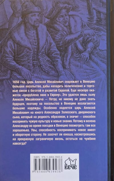 1656. gads. Cars Aleksejs Mihailovičs nosūta uz Venēciju lielu sūtniecību, lai nodibinātu politiskas un tirdzniecības saites ar bagāto un attīstīto Eiropu. Logs uz Eiropu drīzumā netiks atvērts. Izdošanās izdosies tikai Alekseja Mihailoviča dēlam Pēterim, taču neviens nevar paredzēt nākotni, tāpēc lielas cerības tiek liktas uz sūtniecību Venēcijā. Cars Aleksejs Mihailovičs īpašas cerības liek uz jauno Aleksandru Zaļeski, augstmaņa dēlu, kurš ir ārkārtīgi izglītots, proti, spējīgs absorbēt svešu kultūru un jaunas zināšanas. Tāpēc Aleksandram tiek pavēlēts ceļojuma laikā uz Venēciju apskatīt visu, ko var redzēt. Diemžēl spējai uztvert jaunas lietas ir arī sava negatīvā puse. Vai jauneklis, redzējis pietiekami daudz brīnišķīgās dzīves ārzemēs, nolems palikt svešā zemē uz visiem laikiem?