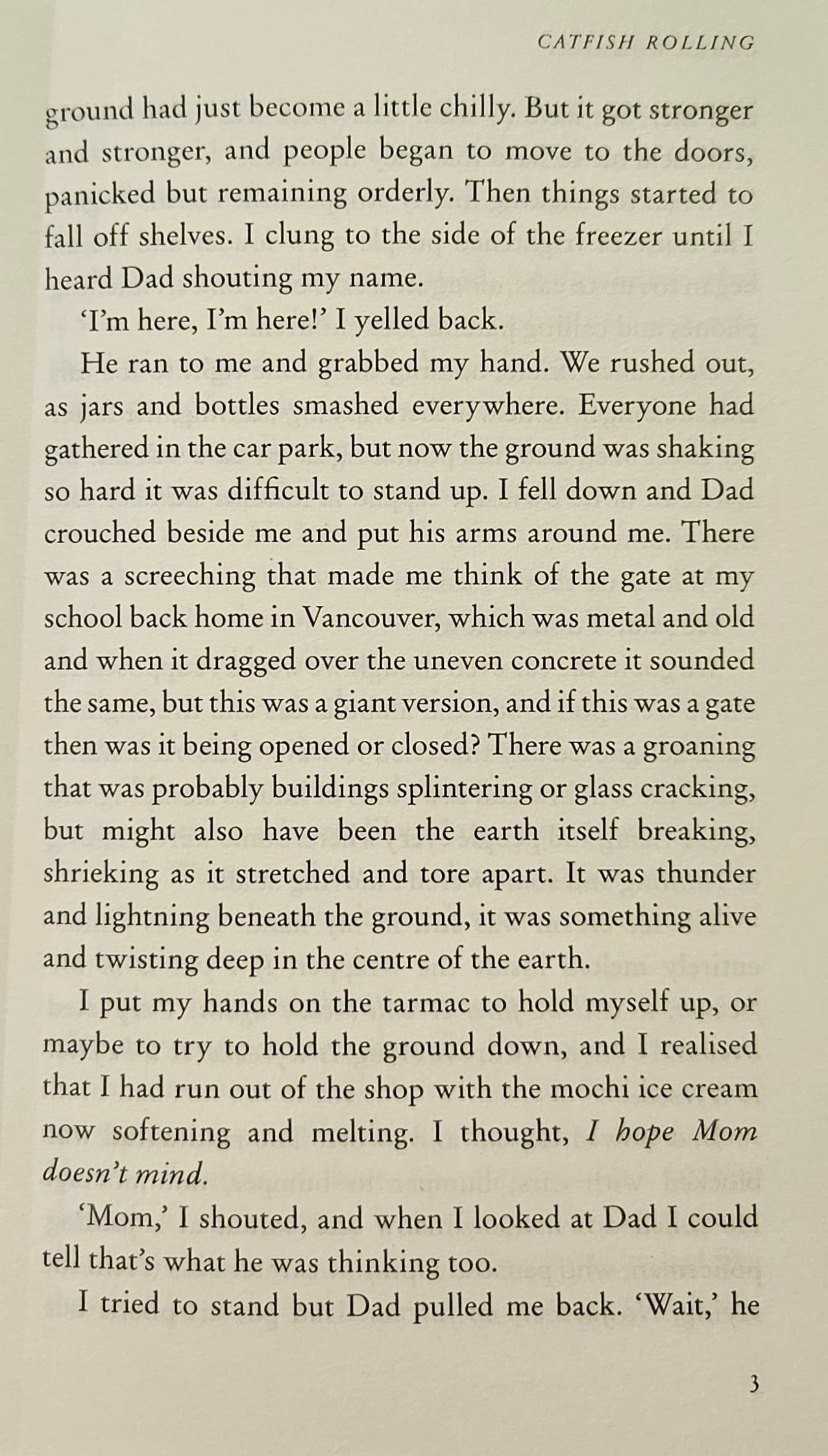Žilbinoša debija. Maģiskais reālisms sajaucas ar japāņu mītu un leģendu oriģinālā stāstā par bēdām, atmiņu, laiku un zemestrīci, kas satricināja tautu.