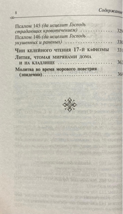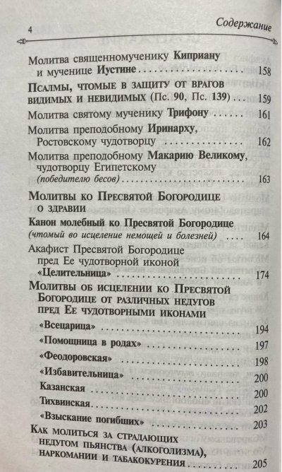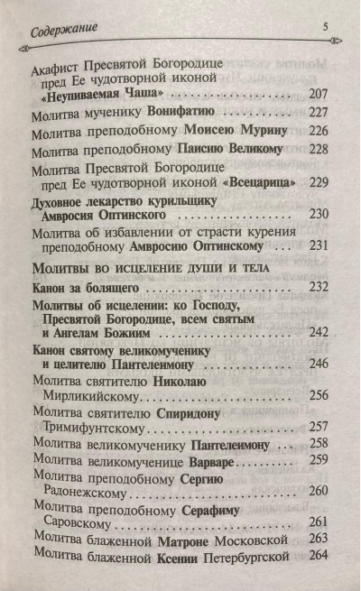 Taču lūgšanas Dievmātei un svētajiem svētajiem nebūs veltīgas to cilvēku svētuma godam, kuri ir iepriecinājuši Kungu. Visi dziedināšanas līdzekļi būs veiksmīgi, ja slimais cilvēks par savu mērķi izvirzīs savas dvēseles pestīšanu – saskaņā ar Dieva baušļiem, nesaraujamā saiknē ar Dievu un Viņa Svēto Baznīcu. Šīs lūgšanu grāmatas unikāla iezīme ir reta kanona iekļaušana Svētajam Erceņģelim Miķelim un kanona Vissvētākajai Dievmātei slimajiem.