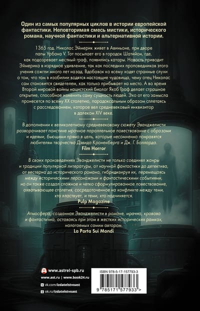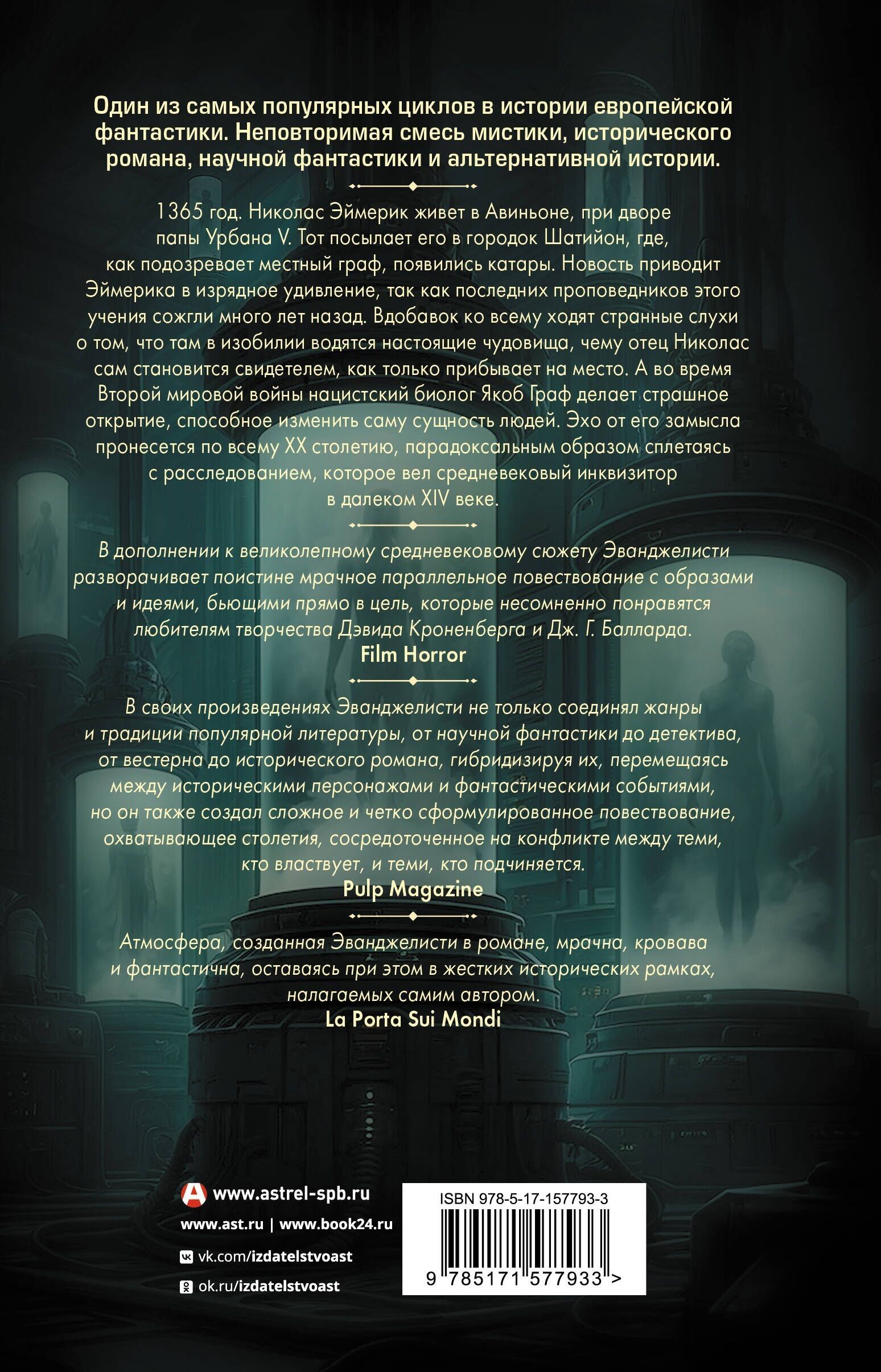 Nikolass Eimeriks dzīvo Aviņonā, pāvesta Urbāna V galmā. Viņš nosūta viņu uz Šatiljonas pilsētu, kur vietējam grāfam ir aizdomas, ka ir parādījušies katarieši. Šīs ziņas Eimerikam ir diezgan pārsteigums, jo pēdējie šīs mācības sludinātāji tika sadedzināti pirms daudziem gadiem. Papildus tam visam klīst dīvainas baumas, ka tur pārpilnībā mīt īsti briesmoņi, kam pats tēvs Nikolass kļūst par aculiecinieku, tiklīdz viņš ierodas vietā. Un Otrā pasaules kara laikā nacistu biologs Jakobs Grafs atklāj šausmīgu atklājumu, kas varētu mainīt pašu cilvēku būtību. Viņa plāna atbalss skanēs visu 20. gadsimtu, paradoksālā kārtā savijoties ar izmeklēšanu, ko tālajā 14. gadsimtā veica viduslaiku inkvizitors.