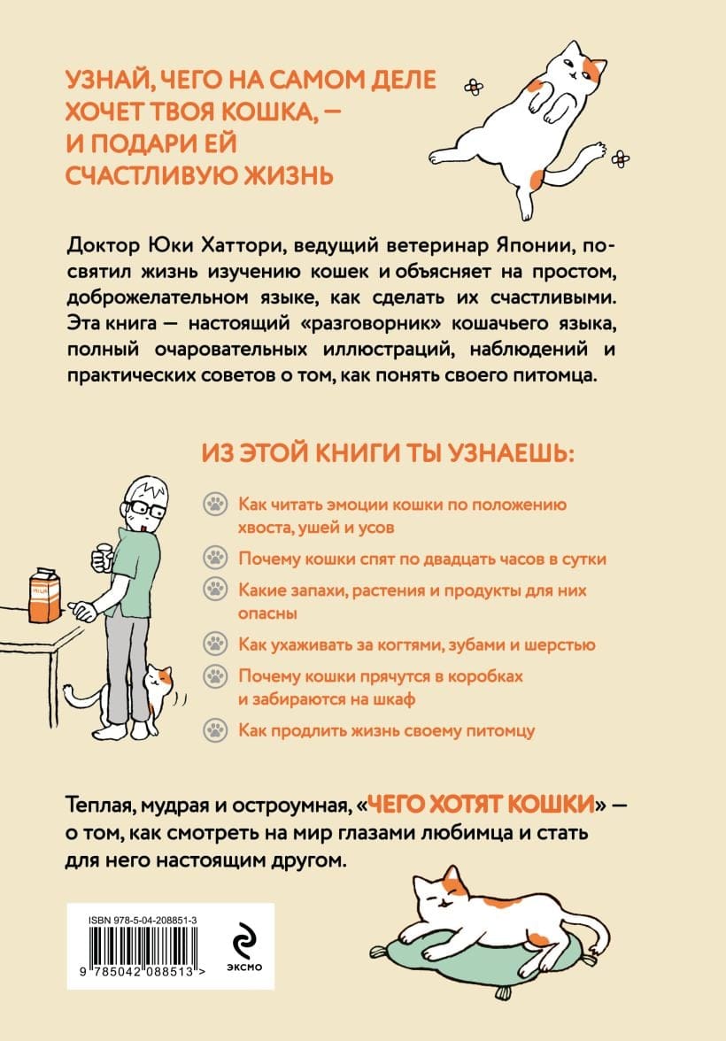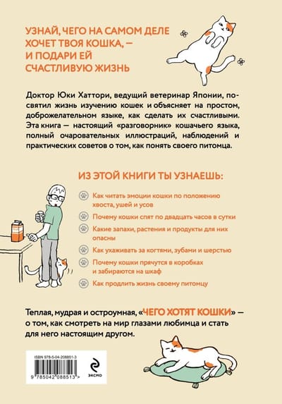 Kaķi nav tik vienkārši, kā šķiet. Viņiem rūp, kur atrodas viņu bļoda, kāda ir ūdens temperatūra, kā skan jūsu balss un cik ērta ir viņu guļvieta. Viņu veselība un garastāvoklis — un līdz ar to arī jūsu mājas komforts — ir atkarīgs no šīm mazajām detaļām. Dr. Juki Hatori, Japānas vadošais veterinārārsts, ir veltījis savu dzīvi kaķu izpētei un vienkāršā, draudzīgā valodā skaidro, kā tos padarīt laimīgus. Šī grāmata ir īsta kaķu valodas "frāžu grāmata", kas ir pilna ar jautrām krāsu ilustrācijām, novērojumiem un vienkāršiem, sirsnīgiem padomiem, kā saprast savu pūkaino draugu.
