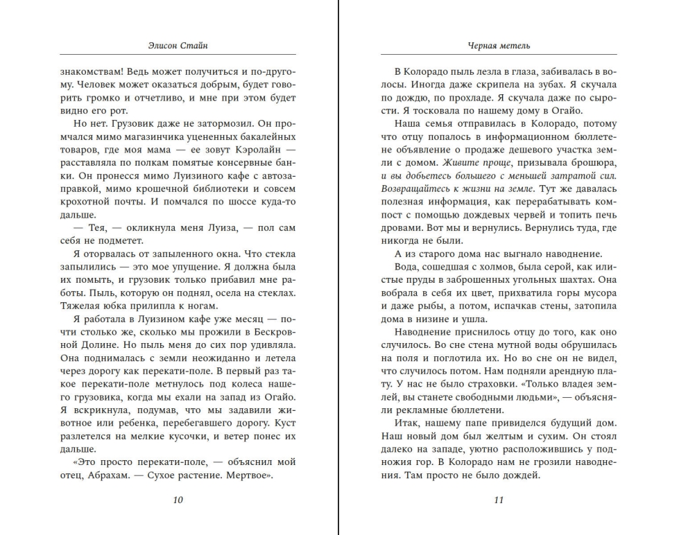 Cerot sākt visu no jauna, Tēas tēvs pārceļ ģimeni uz Bezasiņu ieleju Kolorādo dienvidos. Taču upes izsīkst, raža iet bojā, un atgriežas melnās sniega vētras. Tēai šķiet, ka viņas dzīve ir apstājusies: viņai ir aizliegts iet skolā, aizņemties grāmatas no bibliotēkas vai sarakstīties ar veciem draugiem.