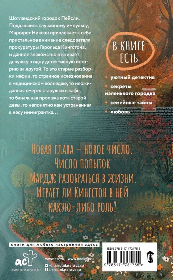 Skotijas pilsēta Peislija. Sekojot nejaušam impulsam, Mārgareta Niksone piesaista prokurora Harolda Kingstona uzmanību, un šī paziņa meiteni ievelk vienā detektīvstāstā pēc otra. Reizēm tā ir sena mafijas izrēķināšanās, reizēm dīvaina pazušana medicīnas koledžā, reizēm negaidīta vecas kundzes nāve kafejnīcā, reizēm banāla vecas kalpones kaķa pazušana, reizēm imigrants, kuru mežā iznīcināja nezināms cilvēks…