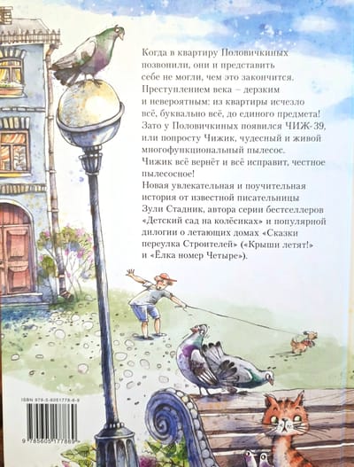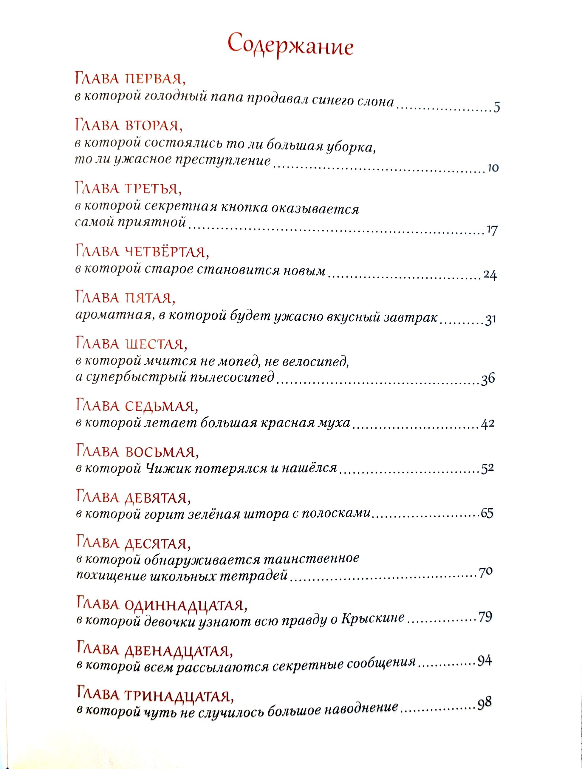 Jautra un ļoti cilvēcīga pasaka par burvju putekļsūcēju Čižiku, kurš ieradās dzīvot pie skolnieces Poljas Polovičkinas ģimenes. Kā jau mūsdienīgai ierīcei pienākas, Čižikam ir daudz funkciju: viņš var ne tikai iztīrīt dzīvokli (lai tur nepaliktu neviens priekšmets, kur nu vēl putekļu daļiņa), bet arī nogādāt savus saimniekus uz darbu un skolu ātrāk nekā jebkurš taksometrs, un pirms tam pabarot viņus ar gardām brokastīm. Bet pats galvenais - Čižiks palīdzēs skolniekiem un viņu skolotājai, sauktai par Tērauda Matu Sprādzi, saprast, cik svarīgi ir jebkuros apstākļos palikt pašam.