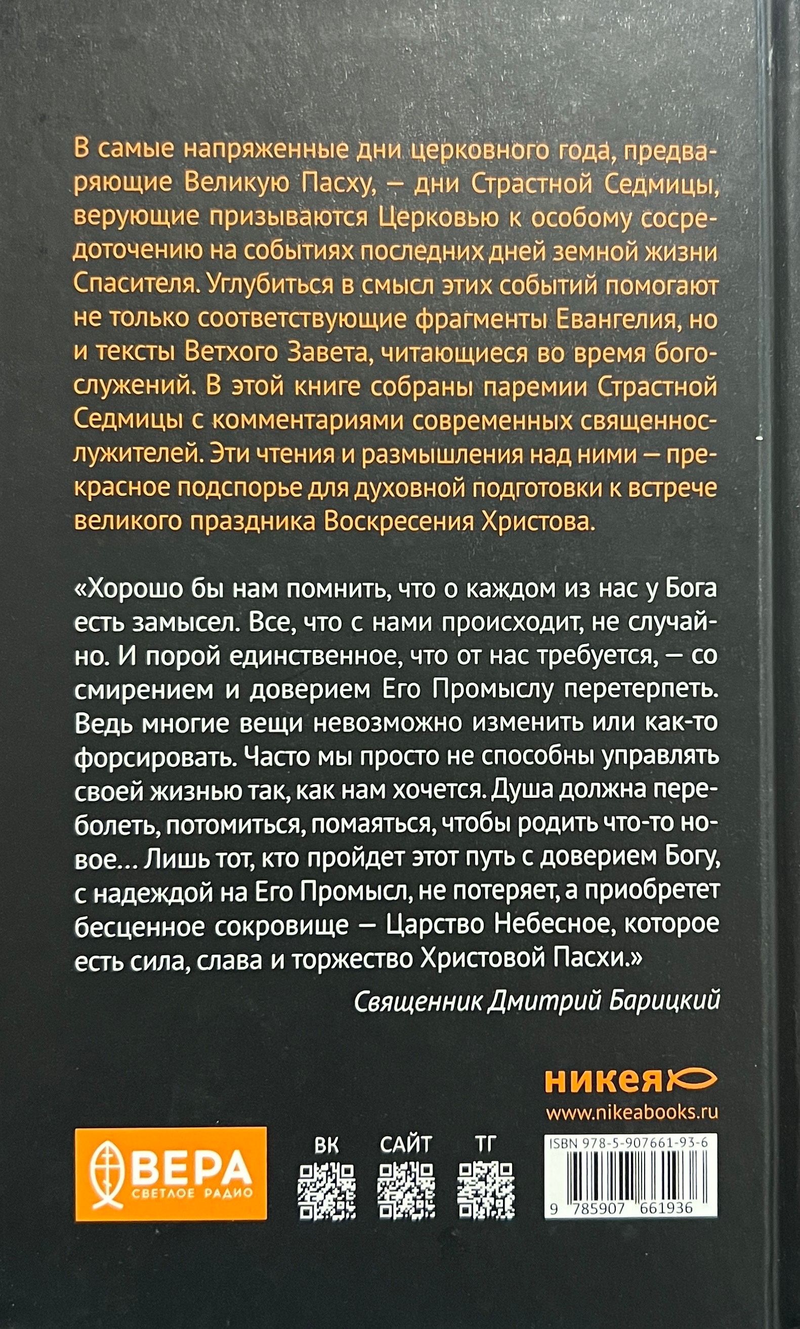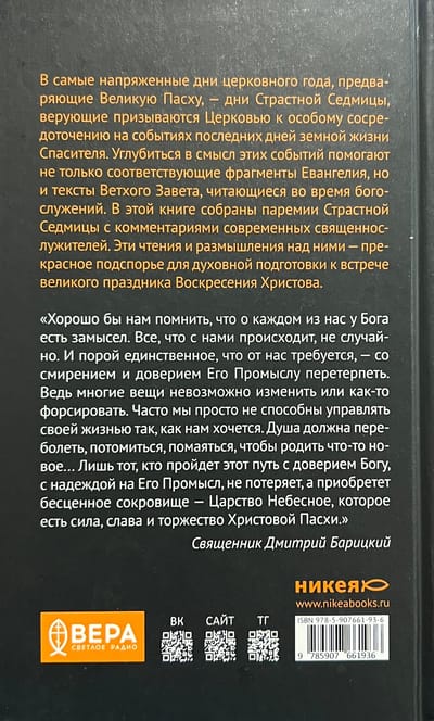 Šajā grāmatā ir iekļauti lasījumi no Lielās nedēļas parēmijām ar mūsdienu garīdznieku vēsturiskiem, teoloģiskiem un ētiskiem komentāriem. Šie lasījumi un pārdomas par tiem var kalpot kā brīnišķīgs palīglīdzeklis garīgai sagatavošanās procesam Kristus Augšāmcelšanās lielajiem svētkiem.