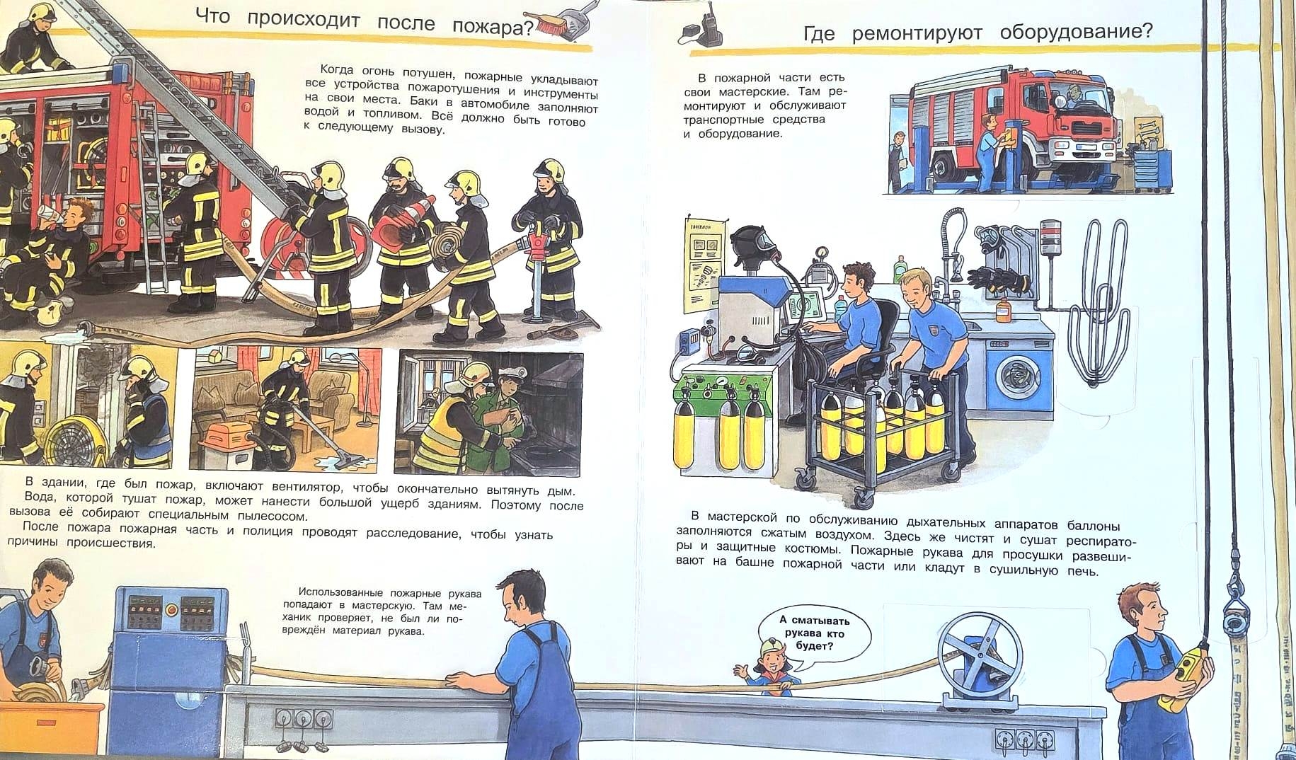 Rūpīgi zīmētos attēlus var pētīt stundām ilgi, pamanot un atklājot jaunus, mazzināmus un pārsteidzošus faktus par ugunsdzēsēju būtisko un svarīgo profesiju. Neskaitāmie lodziņi un vārsti ar dažādu papildu informāciju ne tikai sniegs nepieciešamos skaidrojumus un izsmeļošas atbildes uz bērnu jautājumiem, bet arī pārvērtīs lasīšanu par aizraujošu spēli, attīstot uzmanību un zinātkāri.