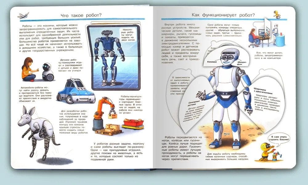 Ilustrēta enciklopēdija "Kas? Kāpēc? Kāpēc? Viss par robotiem" jums pastāstīs daudz interesanta par robotikas pasauli. Katra enciklopēdijas lappuse ir pilna ar interesantu informāciju par mūsdienu robotiem, to konstrukciju un pielietojumu. Mazie lasītāji uzzinās, kādi roboti jau ir izgudroti un kā tie palīdz cilvēkiem ikdienā, kāpēc ir vajadzīgi un kā darbojas roboti glābēji, ko "pēta" robotu pētnieki un daudz ko citu. Spilgta un pievilcīga lielizmēra grāmata ir iespiesta uz augstas kvalitātes laminēta kartona ar noapaļotām lappušu malām. Rūpīgi zīmētos attēlus var aplūkot stundām ilgi, bet daudzie logi un atloksnes ar dažādu papildu informāciju ne tikai sniegs nepieciešamos skaidrojumus un izsmeļošas atbildes uz bērna jautājumiem, bet arī pārvērs lasīšanu aizraujošā spēlē, attīstīs uzmanību un zinātkāri. Grāmata būs brīnišķīga dāvana mazajiem "gudriniekiem" un vērtīgs papildinājums mājas bibliotēkai.