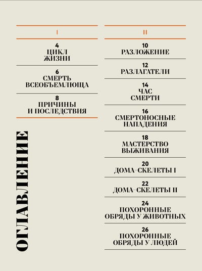 Kāpēc mēs mirstam? Kas ar mums notiek pēc nāves un kāpēc mēs par to gandrīz nerunājam? Kurš dzīvnieks ir visbīstamākais cilvēkiem? Kāda ir pēdējā sajūta, ko mēs zaudējam pirms nāves? Vai zinājāt, ka dažas medūzas spēj atgriezties bērnībā un tādējādi atjaunot dzīves ciklu? Un ka ir suņi, kas spēj saost nāvi? Vai arī, ka ir sugas, kas vairojas tikai vienu reizi dzīvē un pēc tam mirst?