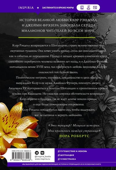 Klēra Rendla atgriežas Skotijā - zemē ar majestātiskiem kalniem, ko klāj migla. Viņa vēlas atklāt patiesību, kas ir tikpat satriecoša kā notikumi, kas to izraisījuši. Patiesību par sena akmens apļa noslēpumu, kas spēj pārcelt cilvēku daudzus gadus atpakaļ, un par Džeimsu Freizeru, astoņpadsmitā gadsimta skotu karotāju, kura drosme un mīlestība pasargāja Klāru no tā vētrainā laikmeta briesmām.Politiskās intrigas, spiegošana, nodevība un virkne slepkavību piespiež Klēru un viņas vīru Džeimsu Freizeru pamest Luija XV pili un doties uz Skotijas purviem un asinīm piesūcinātajām zemēm pie Kuldodenas. Taču briesmīga apstākļu ķēde atgriež Klēru atpakaļ nākotnē, kur viņu gaida ilgas patiesības meklējumi un vēl šokējošākas atklāsmes... Klērai Randallai būs nepieciešams daudz spēka, lai izturētu pārbaudījumu un atgūtu mīļoto vīrieti.