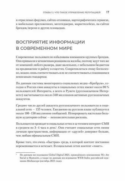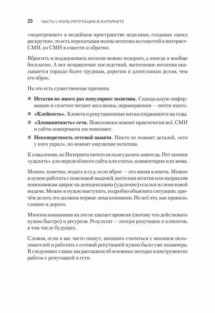 Un šie likumi pastāv, tie jau ir izprasti un aprēķināti, tos var izmantot, lai veicinātu uzņēmējdarbību, pārvaldītu reputāciju, palielinātu ietekmi un pārdošanas apjomus. Reputācijas pārvaldība nav maģija, nav kvantu fizika, tā ir efektīva prasme. Grāmatā aprakstīti šī amata pamatprincipi, paņēmieni un noslēpumi, lai lasītājam tas būtu ne tikai interesanti, bet arī dotu praktisku labumu. Reputācija mūsdienās lielākoties veidojas un tiek uztverta digitālajā telpā, tāpēc digitālo reputāciju aplūkosim kā pozitīvu un negatīvu atsauksmju, izteikumu, ziņu, ziņojumu, tekstu, rakstu, diskusiju, video, atsauksmju kopumu par personu, zīmolu, produktu, organizāciju un indivīdiem visās digitālajās telpās un kanālos: sociālajos tīklos, tiešsaistes medijos, vēstnešos utt. Izlasiet, pielietojiet aprakstītās metodes un rīkus, izmēģiniet. Mēs esam pārliecināti, ka jums izdosies. Jums vienkārši tas ir jādara, un viss notiks.