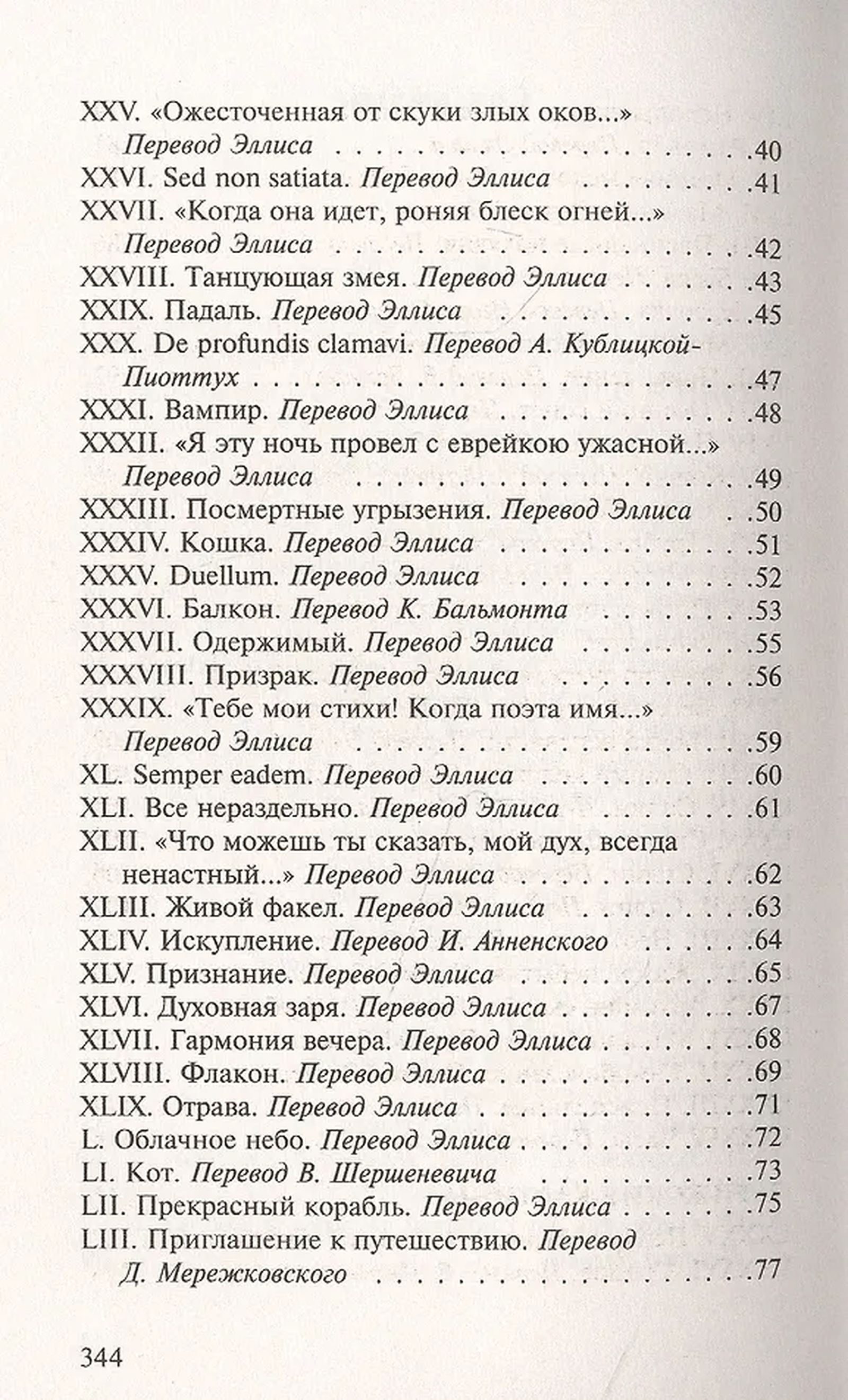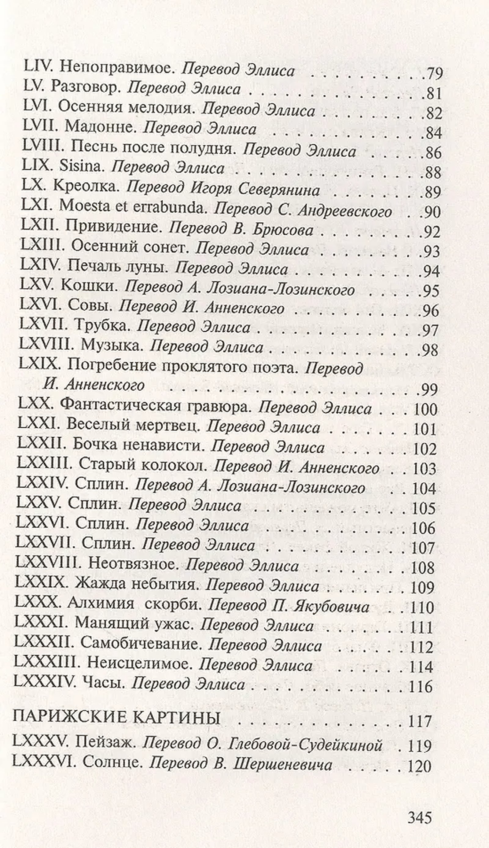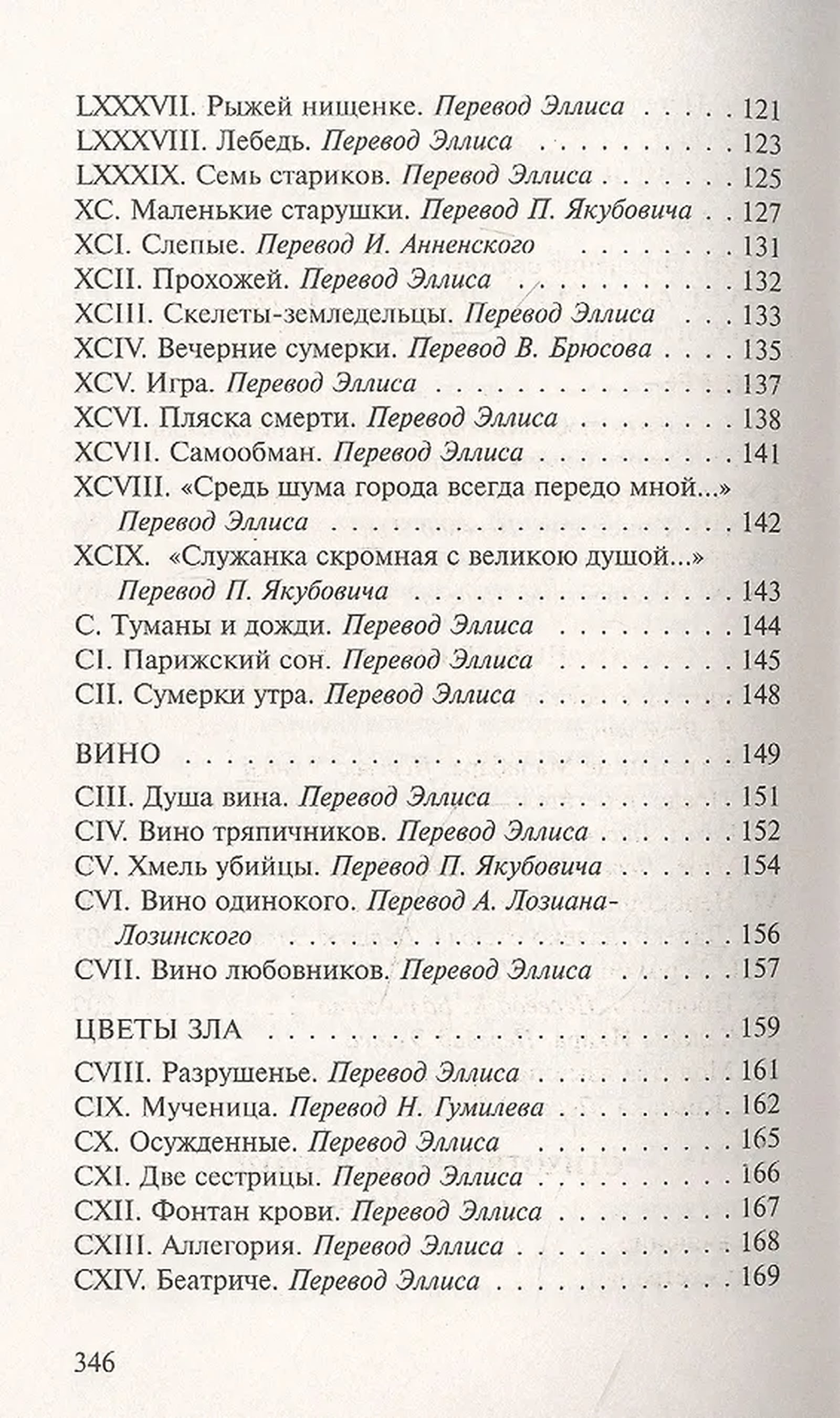 Šajā krājumā iekļautas divas Bodlēra grāmatas — "Dzejoļi prozā" un fundamentālā "Ļaunuma ziedi", kas autoram atnesa ievērojamu starptautisku slavu. Šī grāmata, franču simbolisma manifests, pirmo reizi tika publicēta 1857. gadā un izraisīja vētrainu sabiedrības reakciju. Skandāls beidzās ar tiesas sodu dzejniekam, grāmatas tirāža tika konfiscēta, un vis"nepieklājīgākie" dzejoļi tika izņemti no krājuma.