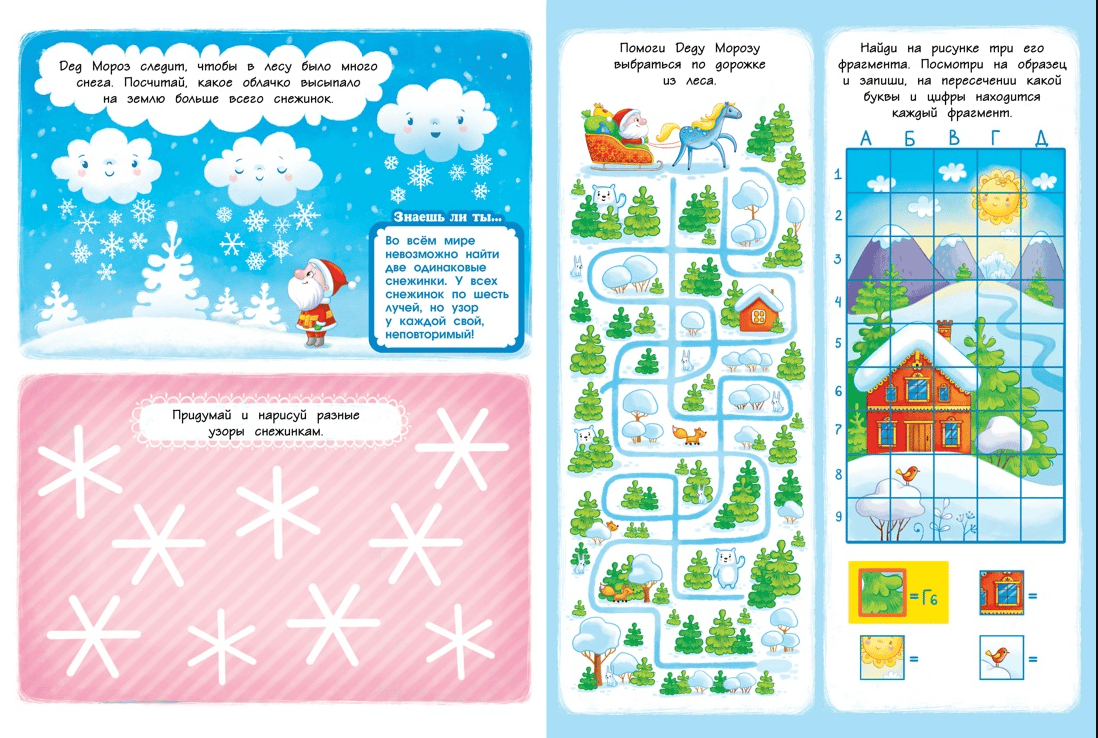 Vectēvam Frostam pirms Jaunā gada ir daudz darāmā: viņam jāpārliecinās, vai mežā ir pietiekami daudz sniega, un jāsagatavo rotaļlietas Ziemassvētku eglītei un jāiesaiņo dāvanas, kā arī noteikti jāuzraksta dzejolis. konkurss! Šajā grāmatā jūs atradīsiet labirintus, spēles ar uzlīmēm un zīmēšanas spēles, mīklas un krustvārdu mīklas. Cepiet piparkūkas ar vāverēm, pagatavojiet rotaļlietas Ziemassvētku eglītei ar Vectēvu Frost un izgrieziet košas maskas Jaungada svētkiem. Krājiet krāsainos zīmuļus un svētku noskaņu - un dodieties uz ziemas pasaku!