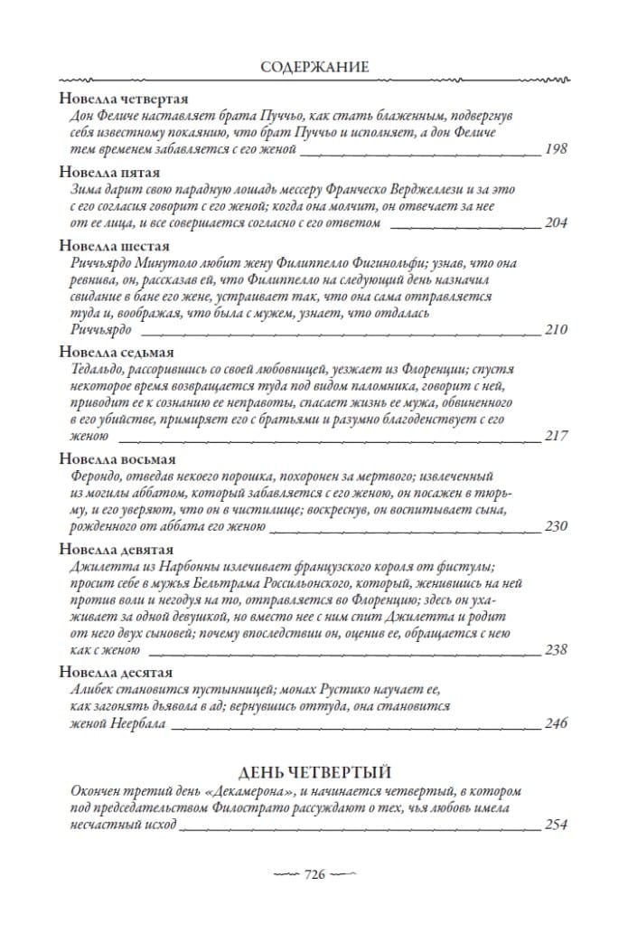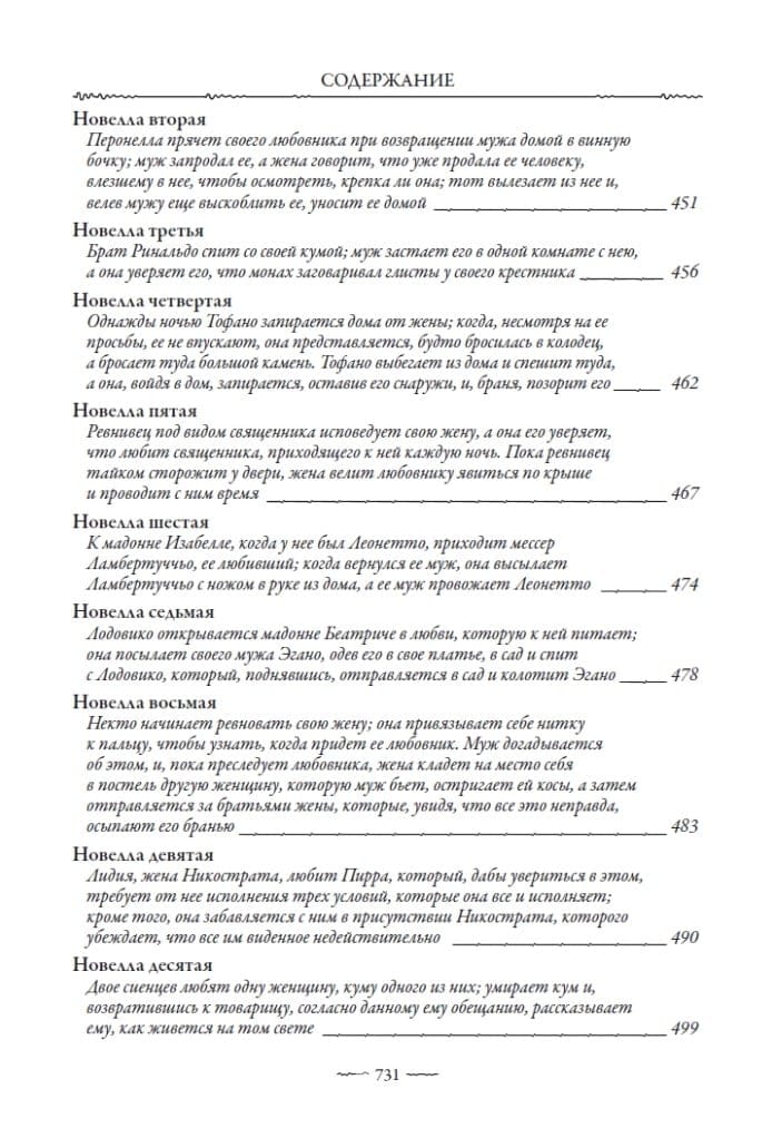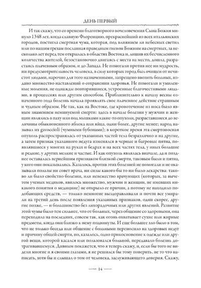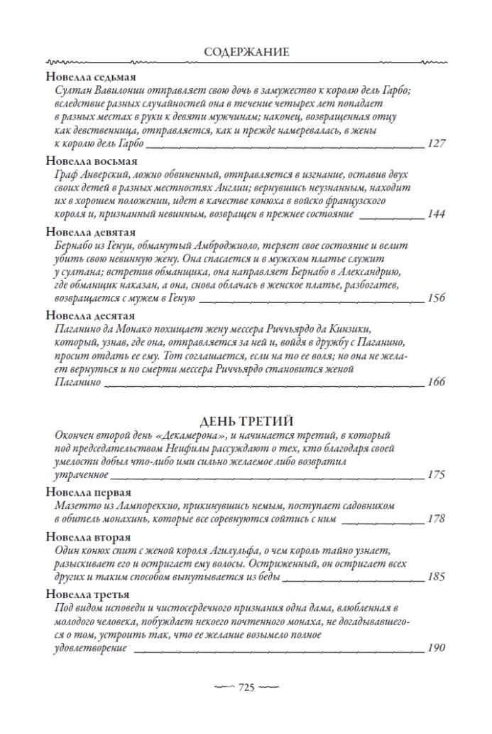 Šajā izdevumā iekļauts krievu valodnieka A. N. Veselovska Bokačo “Dekamerona” tulkojums, kas necenzēts publicēts 19. gadsimta beigās. Aleksandrs Nikolajevičs bija izcils gan viduslaiku Eiropas literatūras, gan Eiropas folkloras eksperts. Viņa ievērojamā erudīcija, lieliskās Eiropas valodu zināšanas, gan mūsdienu, gan senās, un izcilais stilistiskais talants ļāva Veselovskim savā tulkojumā precīzi atveidot visas Bokačo teksta nianses, kas tik bagātīgas ar “Dekameronu”.