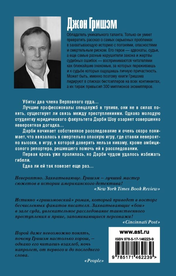 Ir nogalināti divi Augstākās tiesas locekļi... Izlūkdienestu labākie speciālisti ir nonākuši strupceļā, nespēdami saprast, vai starp šiem noziegumiem ir kāda saistība. Tomēr jaunajai jurisprudences studentei Dārbijai Šovai rodas neticama nojauta... Dārbija sāk savu izmeklēšanu un drīz vien saprot, ka ir iesaistīta nāvējoši bīstamā spēlē, kurā likmes ir neticami augstas, spēlē, kurā nevar uzticēties nevienam, izņemot ambiciozu reportieri, kas nolemj viņai palīdzēt izmeklēšanā. Pirmās asinis jau ir izlietas, bet Darbijs brīnumainā kārtā ir izvairījies no nāves. Diez vai viņai tik paveiksies vēlreiz....