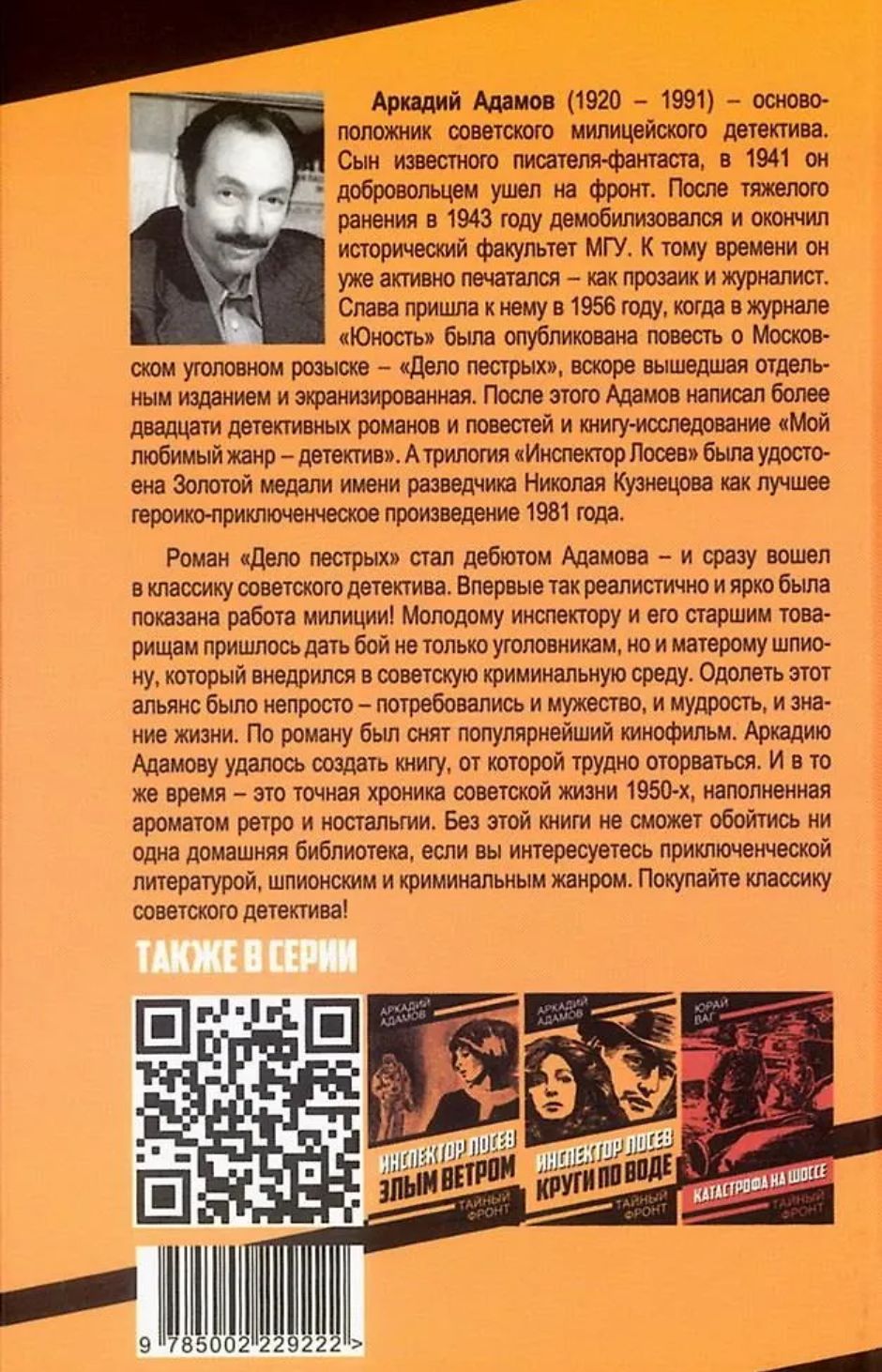 Arkādijs Grigorjevičs Adamovs (1920–1992) — padomju detektīvu klasikas pārstāvis, bija dziļš policijas un noziedzības pazinējs, kas saindēja PSRS pilsoņu dzīves. Šis romāns bija viņa debija — un uzreiz kļuva par padomju detektīvu klasiku. Pirmo reizi policijas darbs tika parādīts tik reālistiski un spilgti! Jaunajam inspektoram un viņa vecākajiem biedriem bija jācīnās ne tikai ar noziedzniekiem, bet arī ar pieredzējušu spiegu, kurš bija iefiltrējies padomju kriminālajā vidē. Šo aliansi nebija viegli pārvarēt — bija nepieciešama drosme, gudrība un dzīves zināšanas.
