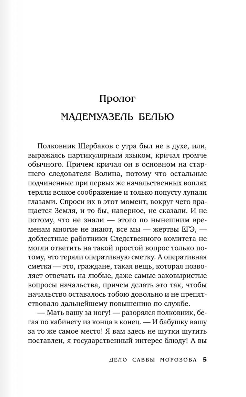 No Parīzes pie Izmeklēšanas komitejas vecākā izmeklētāja Oresta Vitāljeviča Volina ierodas viņa draudzene, franču policijas kapteine Irēna Belue, pazīstama arī kā Irina Belova. Maskavā viņai ir jāizmeklē lieta par deviņdesmito gadu kriminālās autoritātes, tagad - franču uzņēmēja Seregina slepkavību. Seregins tika nogalināts Francijā, bet pēdas ved uz Krieviju. Volins un Belova dodas pie ģenerāļa Voroncova, kurš, iespējams, zina kaut ko par Belovas darbību tālajos deviņdesmitajos gados. Ģenerālis iesaka viņiem izlasīt vēl vienu Nestora Zagorska memuāru grāmatu…