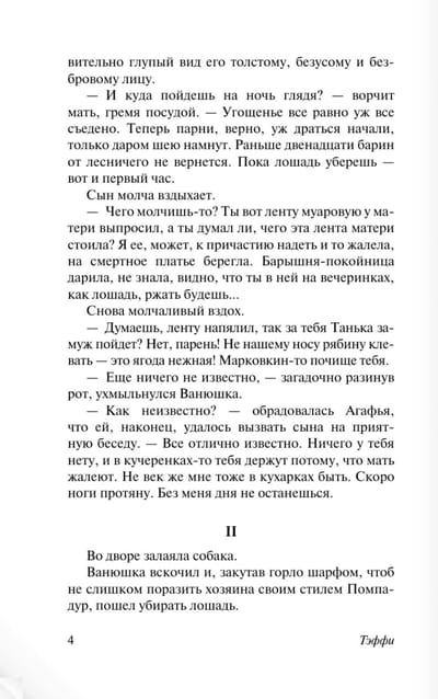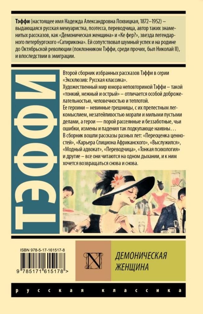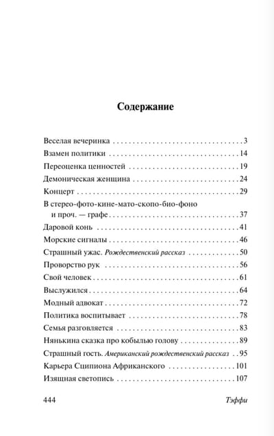 Neatkārtojamā Tafija humora mākslinieciskā pasaule - tik "smalka, maiga un asa" - izceļas ar īpašu labestību, cilvēcīgumu un siltumu. Viņas varones - nevainīgas grēcinieces ar savu burvīgo vieglprātību, morāles nepretenciozitāti un jaukām tukšām afērām, un varoņi - reizēm izklaidīgi un bezrūpīgi, kuru kļūdas, nodevības un kritieni ir tik uzpirgti naivi... Krājumā iekļauti dažādu gadu stāsti: "Vērtību pārvērtēšana", "Spiziona Afrikāņa karjera", "Izsniegts", "Modes jurists", "Tulkotājs", "Smalkjūtīgā psiholoģija" un citi - visi tie lasāmi vienā elpas vilcienā, un pie tiem gribas atgriezties atkal un atkal.