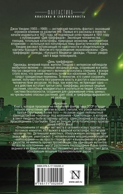 Trifīdu diena. Kādu vakaru Londonas iedzīvotāji ar interesi vēroja neparastu parādību - zaļu zvaigžņu lietu, kas izgaismoja visas debesis. No rīta noslēpumainās parādības liecinieki pamodās akli, un drīz vien kļuva skaidrs, ka gandrīz visi Zemes iedzīvotāji ir zaudējuši redzi.