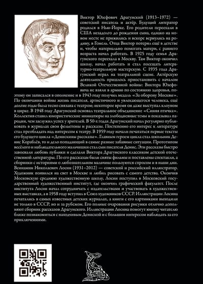 Šajā krājumā iekļauti sešdesmit seši stāsti no padomju bērnu rakstnieka Viktora Juzefoviča Dragunska cikla "Deniskiny rasskazy", kā arī divas lugas un divi šim ciklam pieguloši stāsti.