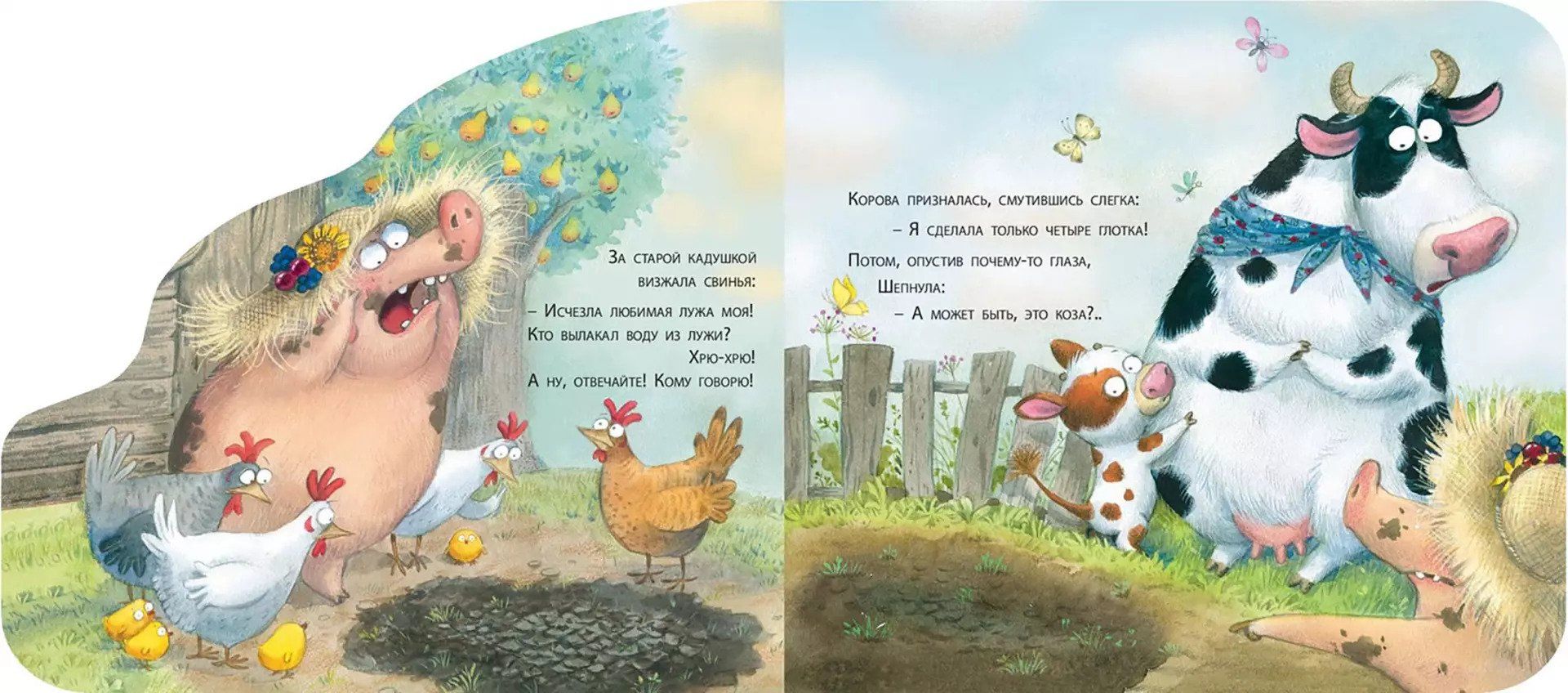 Saimniecībā ir nepatikšanas: tante Cūka ir pazaudējusi savu mīļāko... peļķīti! Kas to varēja izdzert? Tante ir iztaujājusi visus kaimiņus. Bet neviens no "aizdomās turamajiem" neatzīstas. Un atrisinājums izrādās pavisam negaidīts... Jautrie Natālijas Karpovas dzejoļi, Ļubovas Jereminas-Nošinas nerātnie zīmējumi un noslēpumainie attēli, kuros jāatrod pārējie saimniecības iemītnieki, izklaidēs un iepriecinās visus - bērnus, viņu vecākus, vecvecākus. Grāmata ir iespiesta uz blīva kartona ar formas izgriezumu.