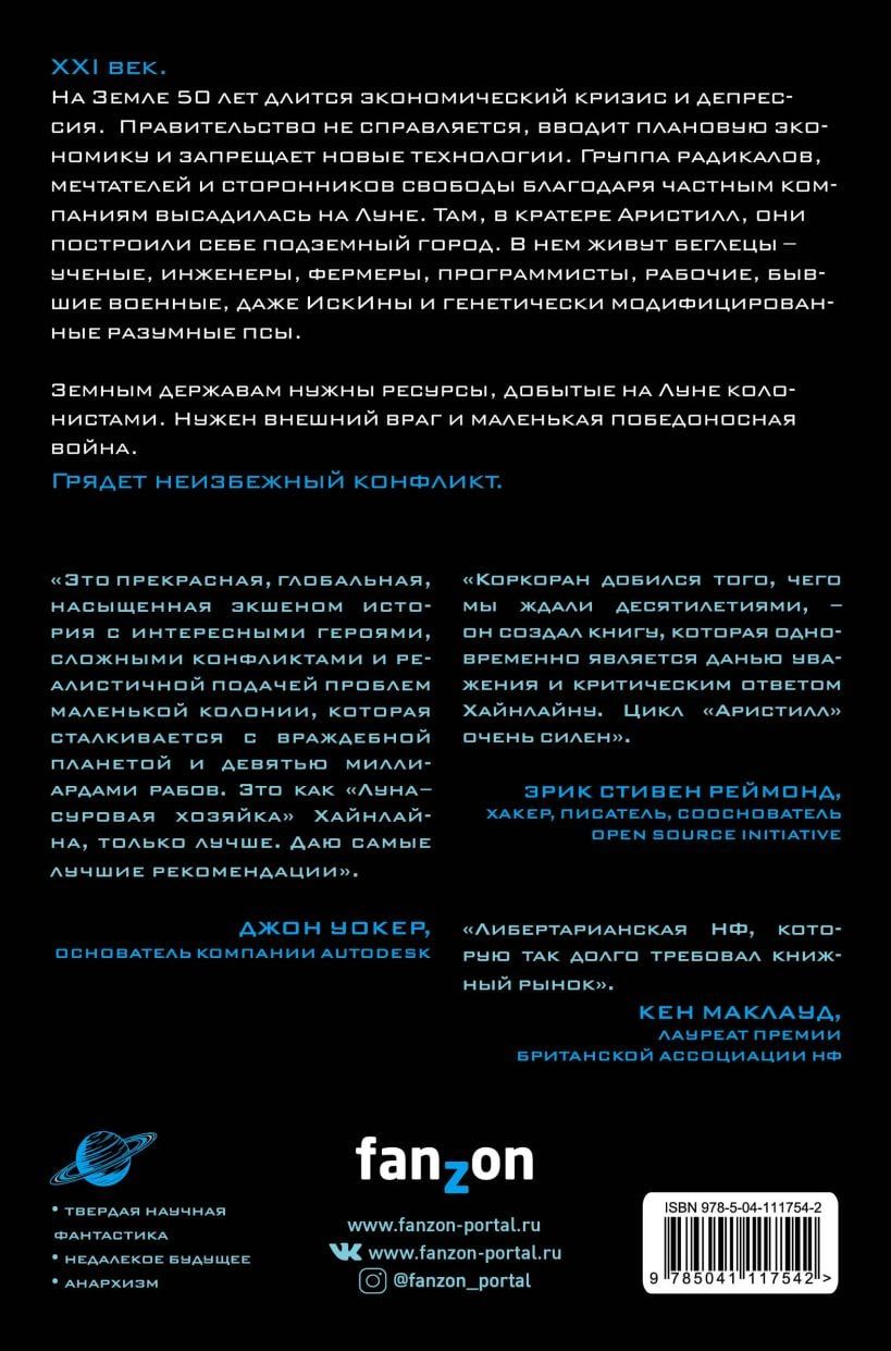 2064. Zeme panīk un varas iestādes ir korumpētas. Depresija ilgst 56 gadus. Valdība dzen pumpurā jebkuras jaunas tehnoloģijas, kas varētu izjaukt plānoto ekonomiku. Pirms desmit gadiem grupa disidentu, sapņotāju un radikālu libertāristu izmantoja savu zinātni, lai nolaistos uz Mēness. Tur viņi uzcēla patversmi. Aristiles, pagrīdes pilsēta jaunās robežas, ir mājvieta amerikāņu tehnokapitālisti, meksikāņu hidraponiskie lauksaimnieki, vjetnamiešu inženieri, Iskins un ģenētiski modificētas spiegu suņiem. Zemes spēkiem ir vajadzīgi resursi, ko uz Mēness izrakuši kolonisti. Mums ir vajadzīgs ārējs ienaidnieks un neliels uzvarošs karš. Ir neizbēgams konflikts.