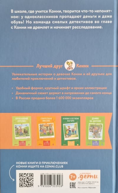 Konijas skolā notiek kaut kas dīvains: viņas klasesbiedru nauda un pat apavi pazūd! Taču drosmīgu detektīvu komanda Konijas vadībā nesnauž un sāk izmeklēšanu. Aizraujošs stāsts no skolas dzīves par loģikas, attapības un draudzības uzvaru – ar pavisam negaidītām beigām.