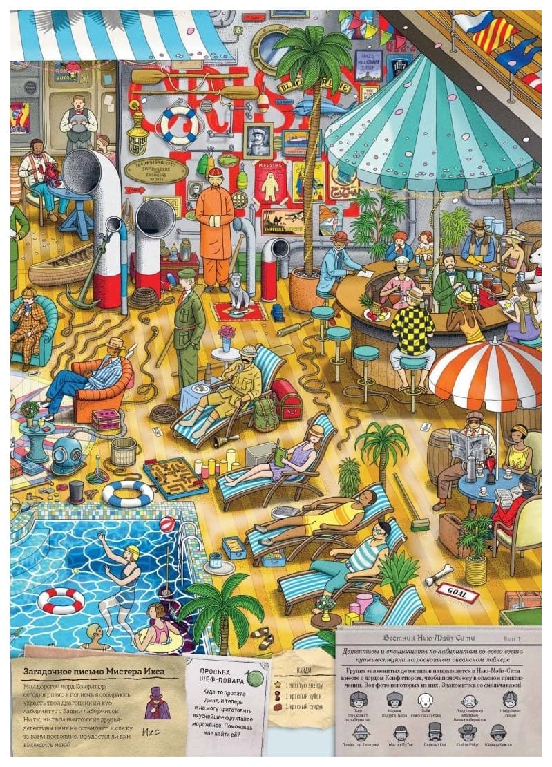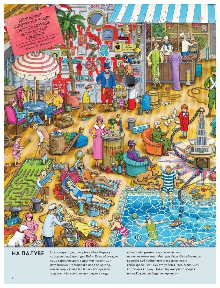 Neizprotamais zaglis X kungs ir atgriezies - ar jaunu un viltīgu plānu! Viņš plāno sagraut Vecgada vakaru un Ziemassvētkus: nozagt vērtīgo kubu no Labirintu torņa virsotnes, lai Jaunā labirinta pilsēta iegrimtu tumsā..... Pjēram un Karmenai kopā ar labākajiem detektīviem būs jāatrisina visas mīklas, jāizpilda visinteresantākie uzdevumi un jānovērš ļaundaris. Drosminieku komandai ir nepieciešama tava palīdzība! Ej cauri katram labirintam, atrodi visus paslēptos priekšmetus un atrisini mīklas. Noteikti palīdzi visiem, kurus satiksi ceļā. Jaunā grāmata par detektīva Pjēra piedzīvojumiem liks tev aizmirst par visu pasaulē un ļaus iegrimt aizraujošā mīklu un labirintu pasaulē!