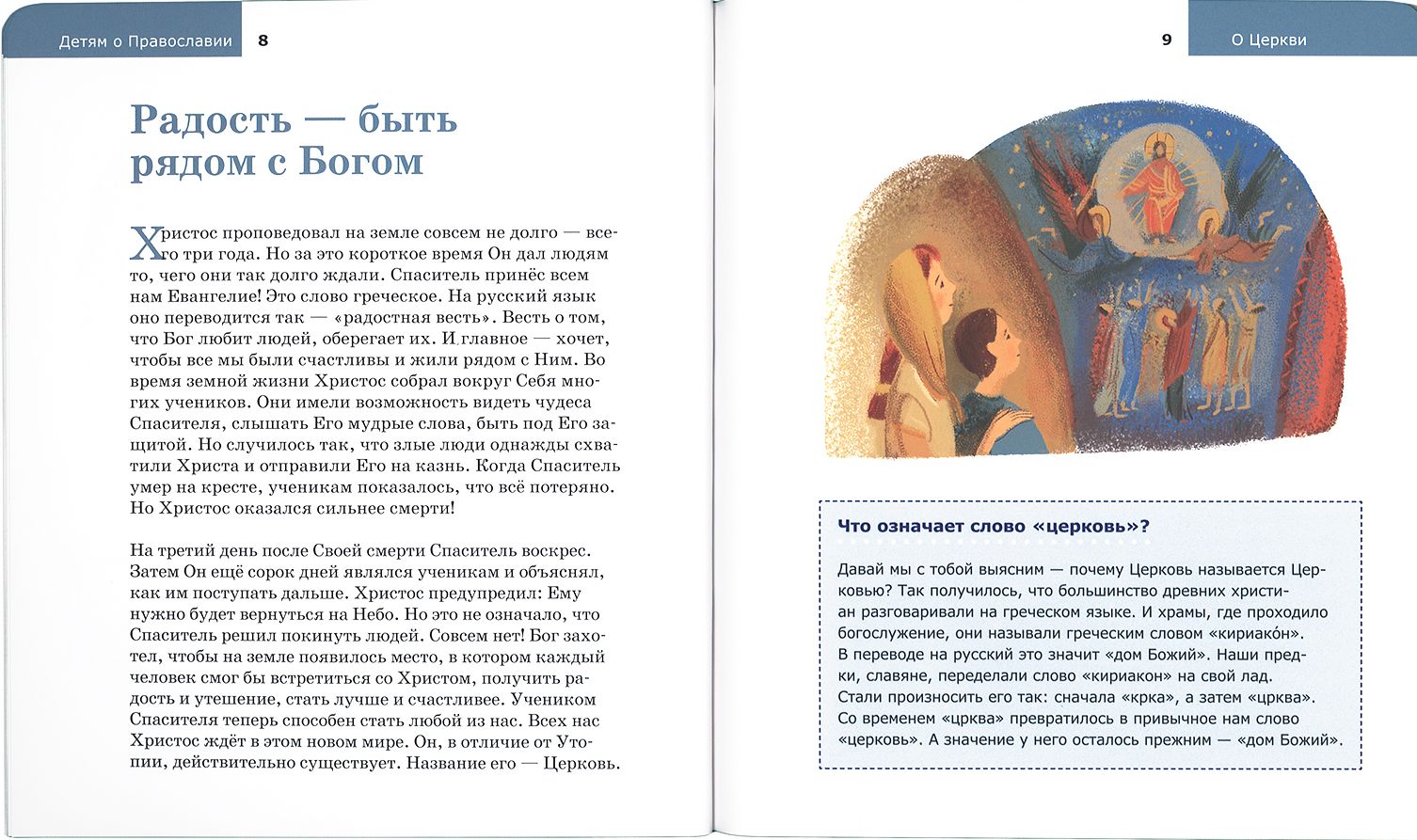 Šī ilustrētā grāmata bērniem stāsta, kas ir Baznīca uz zemes un debesīs, kā tā tika izveidota un kas ir atbildīgs. Un arī par to, kur jūs varat tikties ar Kristu, saņemt prieku un mierinājumu, kļūt labāki un laimīgāki.