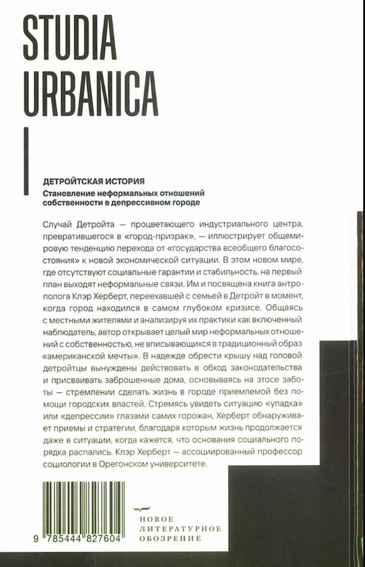 Šajā jaunajā pasaulē, kurā trūkst sociālo garantiju un stabilitātes, priekšplānā izvirzās neformālas saites. Tās ir antropoloģes Klēras Herbertes grāmatas uzmanības centrā, kura kopā ar ģimeni pārcēlās uz Detroitu, kad pilsēta piedzīvoja dziļāko krīzi. Mijiedarbojoties ar vietējiem iedzīvotājiem un analizējot viņu praksi kā līdzdalīga novērotāja, autore atklāj veselu neformālu īpašuma attiecību pasauli, kas izaicina tradicionālo "amerikāņu sapņa" tēlu.