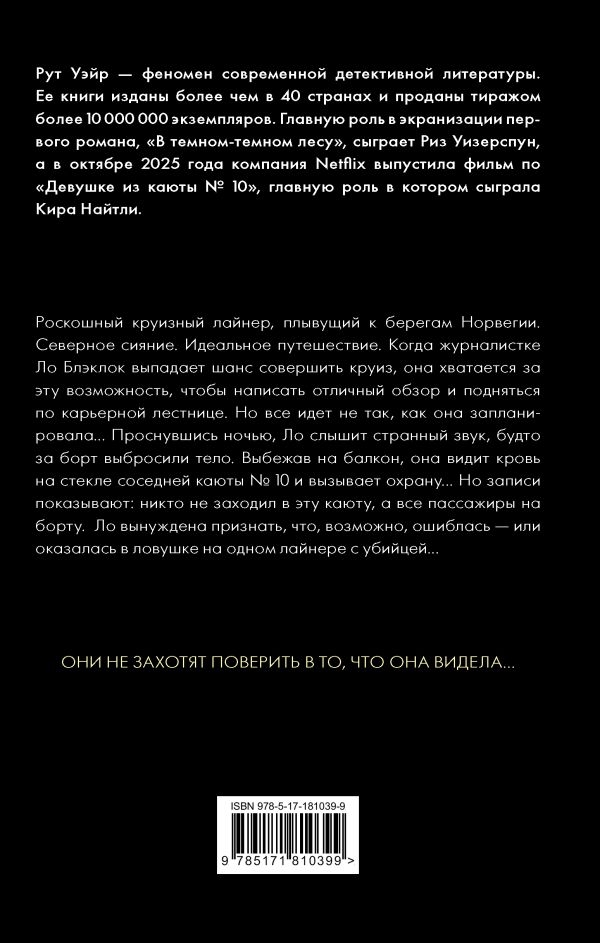 "Meitene 10. kajītē" ir jauns spriedzes romāns, kura autore ir Rūta Vera, trillera "Tumšā, tumšā mežā" autore. Stāsts par noslēpumainu slepkavību kruīza kuģī ir veidots ar Agatas Kristi "Slepkavības Austrumu ekspresī" atmosfēru un Džilianas Flinnas "Pazudusī meitene" spriedzi.