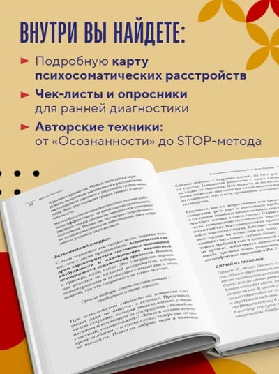 Lai grāmata būtu ne tikai informatīva, bet arī noderīga, dakteris Tetjuškins tajā iekļāva dažādus praktiskus rīkus - testus priekšpārbaudēm, ieteikumus ārsta izvēlei, psihosomatikas profilakses paņēmienus. Šī grāmata ļaus labāk izprast psihosomatisko traucējumu būtību un to korekciju.