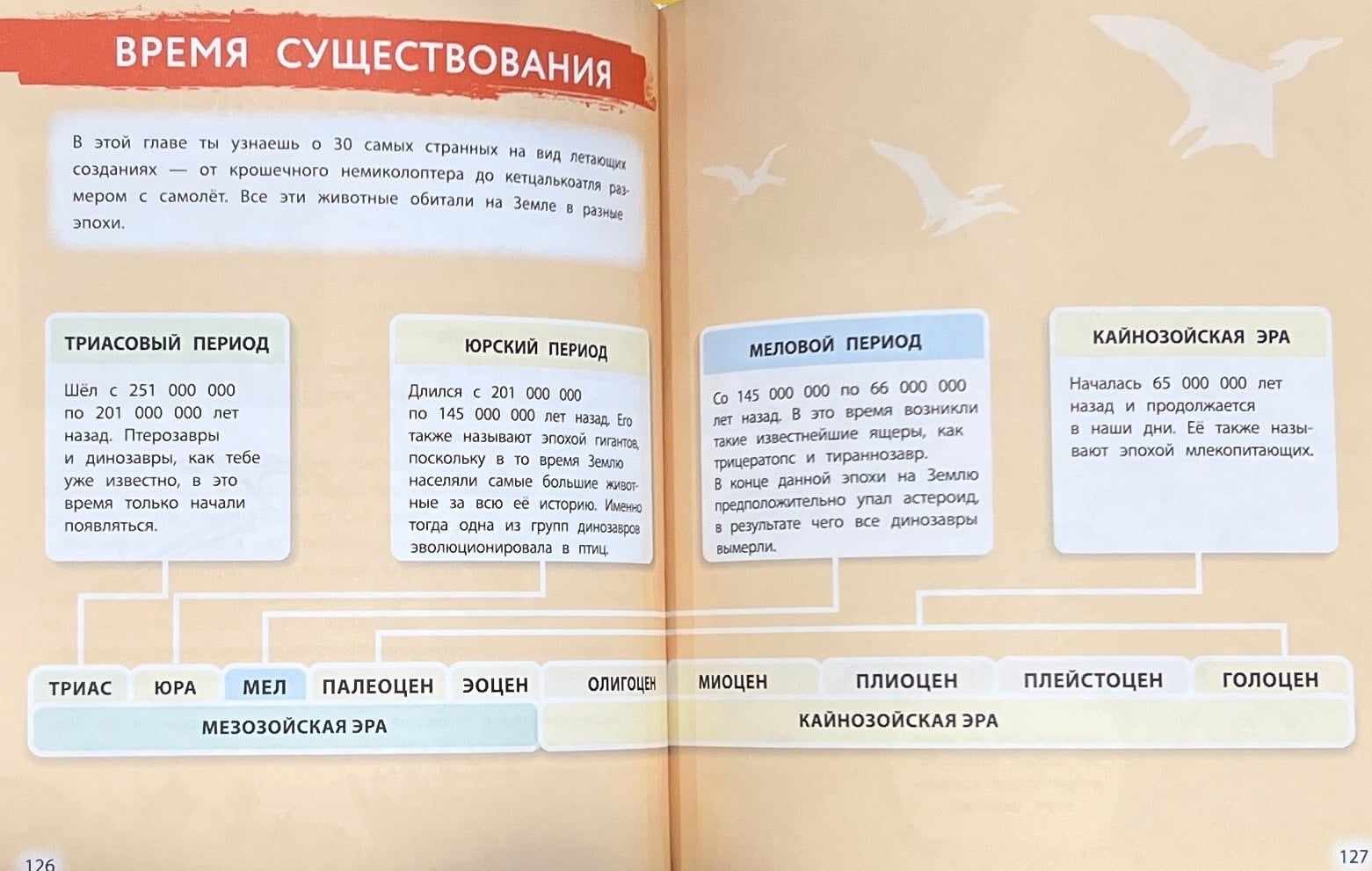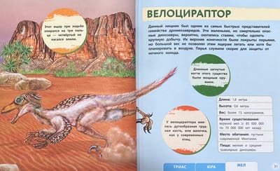 Šī enciklopēdija ir kā īsta laika mašīna, kas aizvedīs jūs tieši uz mezozoju laikmetu! Tā atklās visus plēsīgo un zālēdāju dinozauru, kā arī aizvēstures lidojošo un peldošo radību noslēpumus. Kurš senais ķirzaka varēja atkal un atkal izaudzēt zobus kā haizivs? Vai tā ir taisnība, ka neveikla izskata trikeratops patiešām varēja skriet cauri džungļiem kā haizivs? Kurš no pterozauriem bija tikpat garš kā mūsdienu žirafe? Kura zivs tika uzskatīta par izmirušu, pirms to 1938. gadā atklāja Āfrikā? Šī grāmata atbildēs uz visiem šiem un daudziem citiem jautājumiem. Un neticamās ilustrācijas, kas izraisa gan šausmas, gan sajūsmu, neatstās vienaldzīgu nevienu mazo pirmatnējo Zemes valdnieku cienītāju.