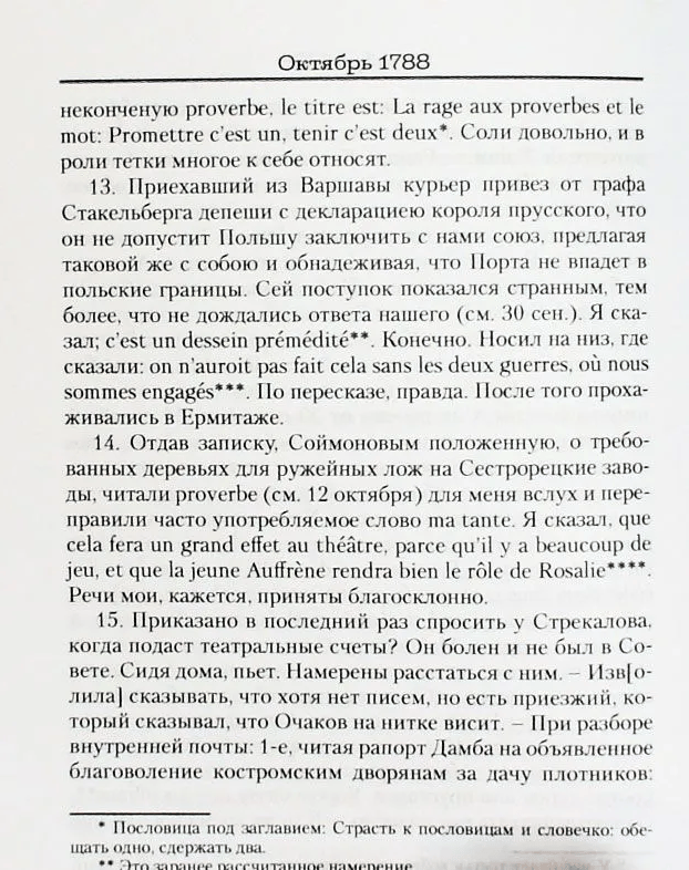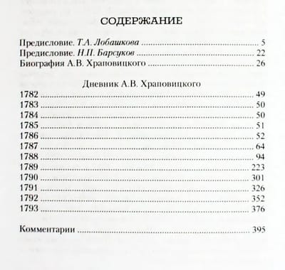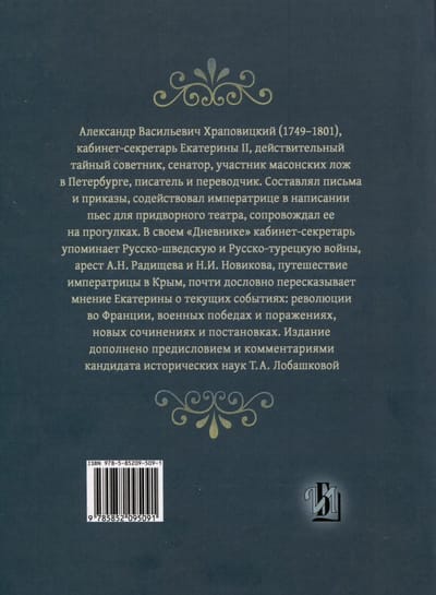 . Savā dienasgrāmatā kabineta sekretārs piemin krievu-zviedru un krievu-turku karus, A. N. Radiščeva un N. I. Novikova arestu, imperatores braucienu uz Krimu un gandrīz burtiski izklāsta Katrīnas viedokli par aktuālajiem notikumiem: revolūciju Francijā, militārām uzvarām un sakāvēm, jauniem darbiem un iestudējumiem. Izdevums papildināts ar vēstures zinātņu kandidātes T. A. Lobaškovas priekšvārdu un komentāriem.